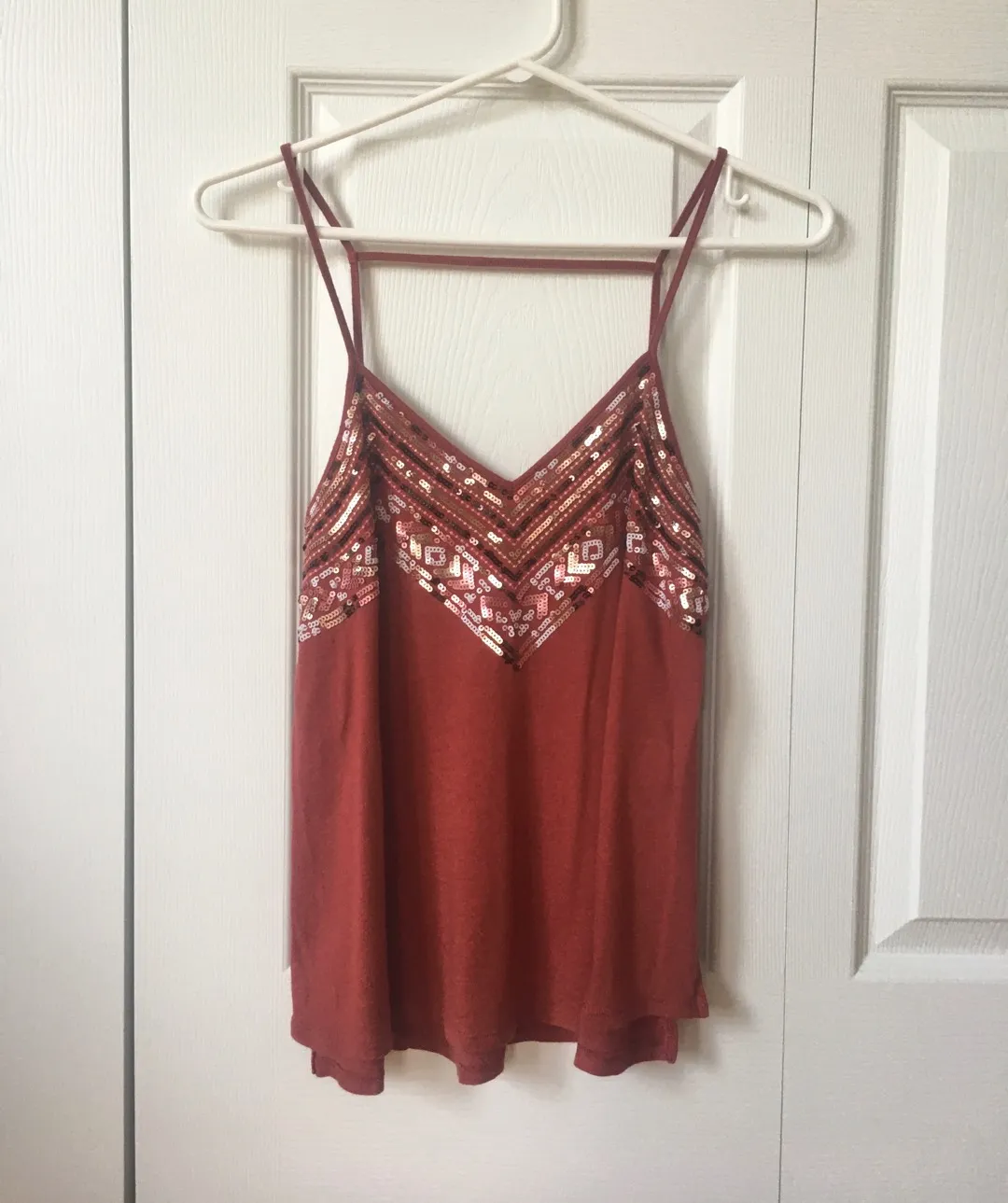 Burnt orange with really pretty sequin embellishments Size XS 60% cotton/40% modal