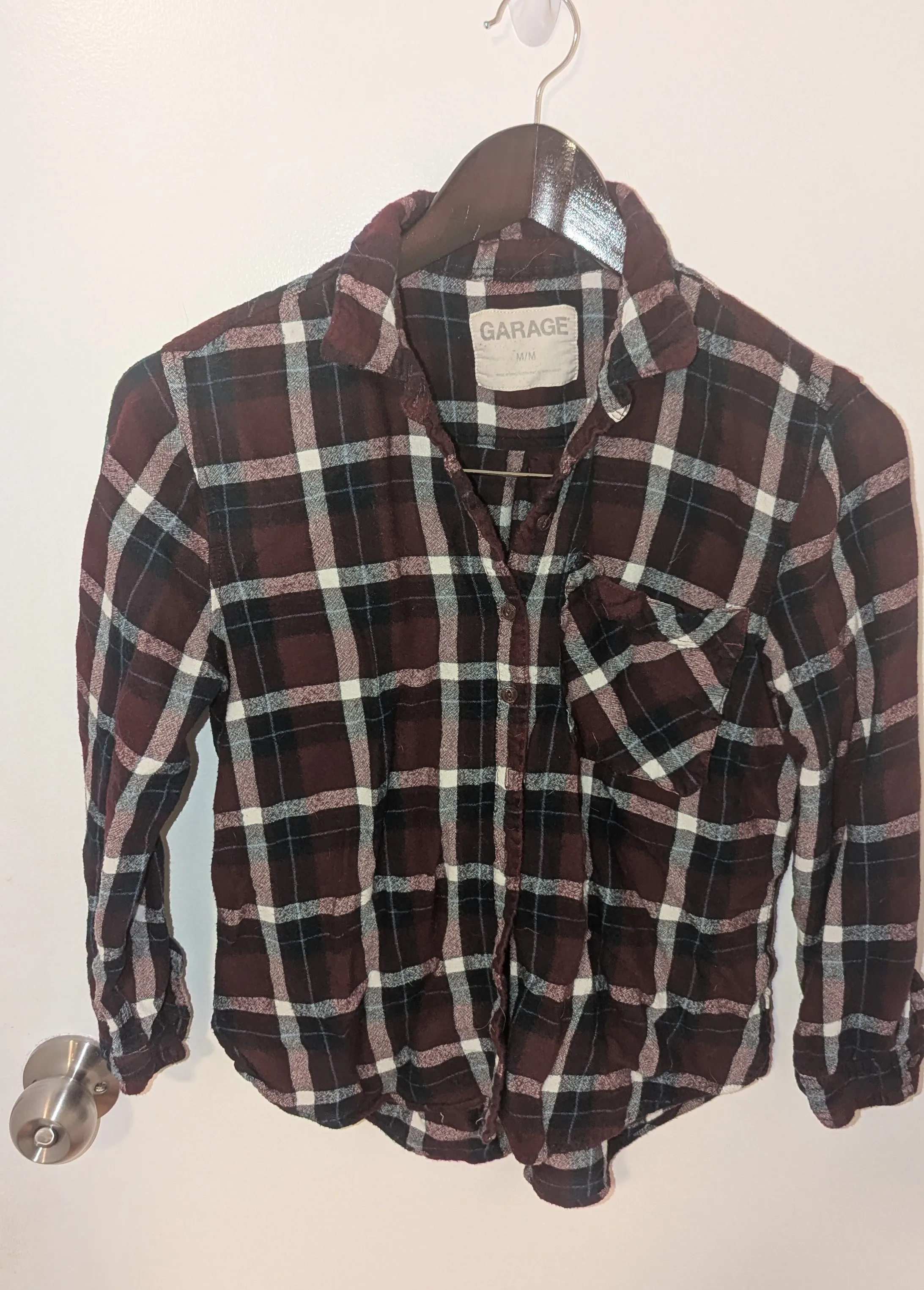 Garage Burgundy Plaid Flannel Shirt - Women's Medium