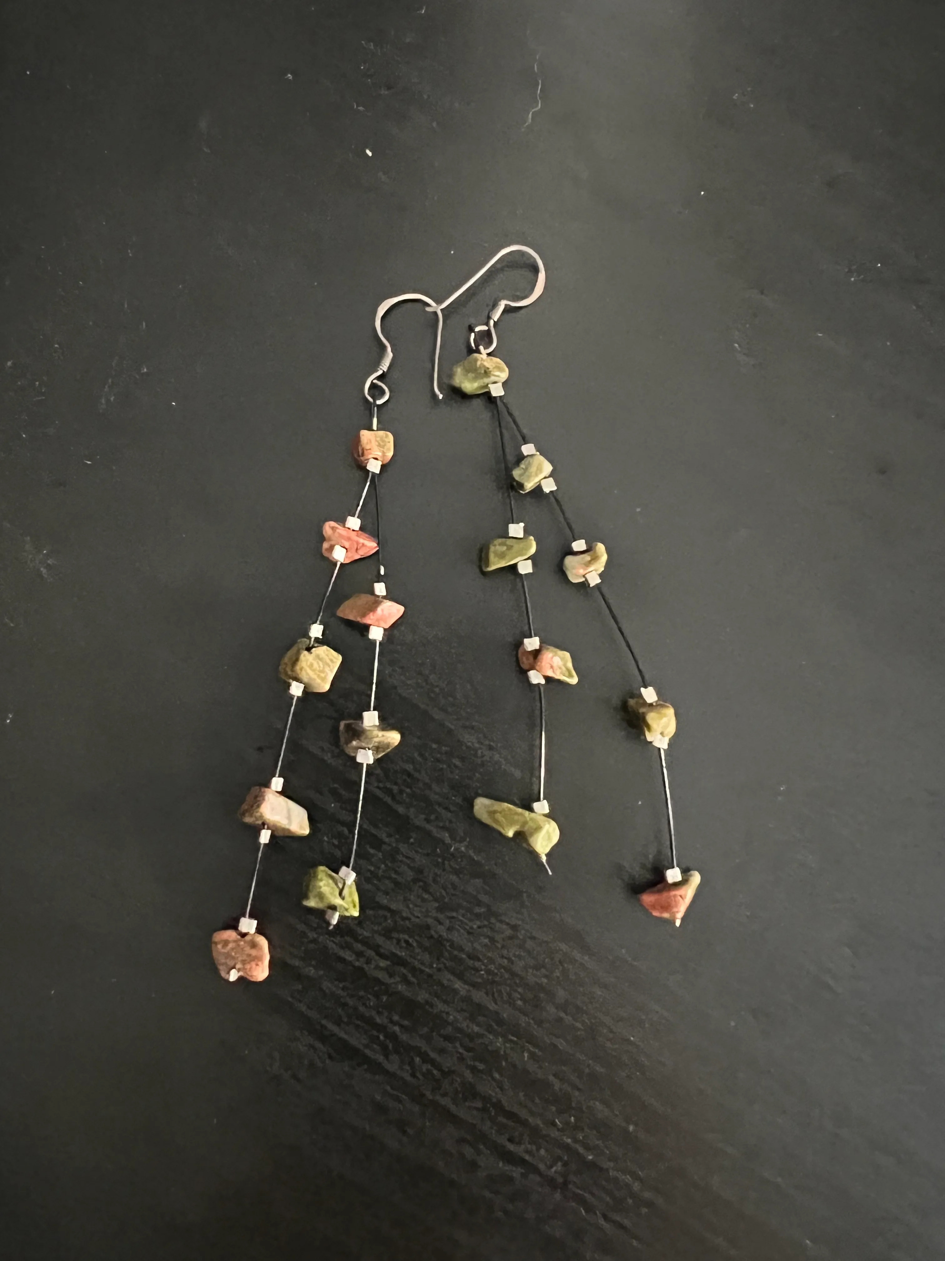 Handmade earrings by a local artist. I believe the stone is agate. Very unique and well made. They were my go to but my style has changed.