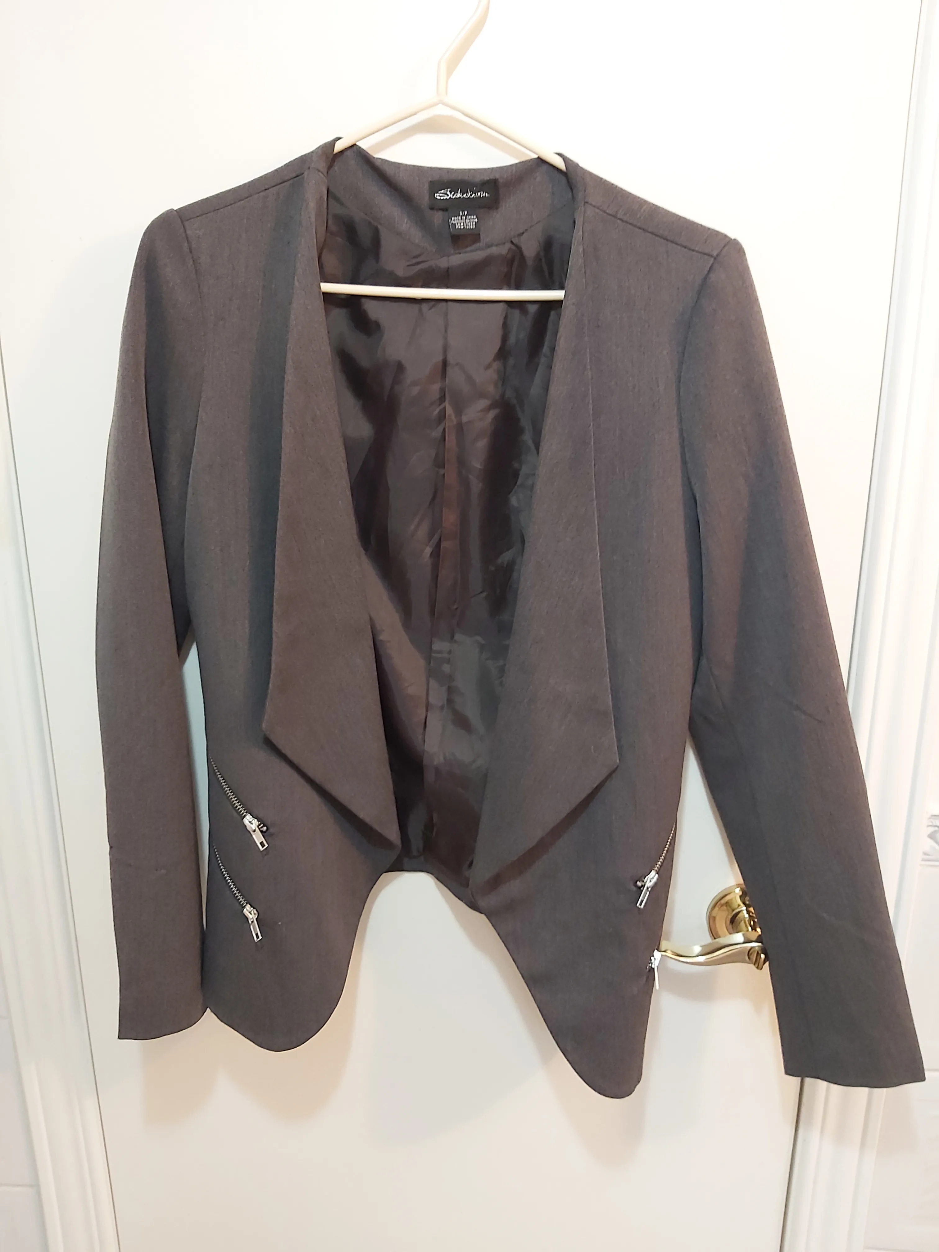 Darker gray blazer with decorative zippers. Unique and cute! Size small.