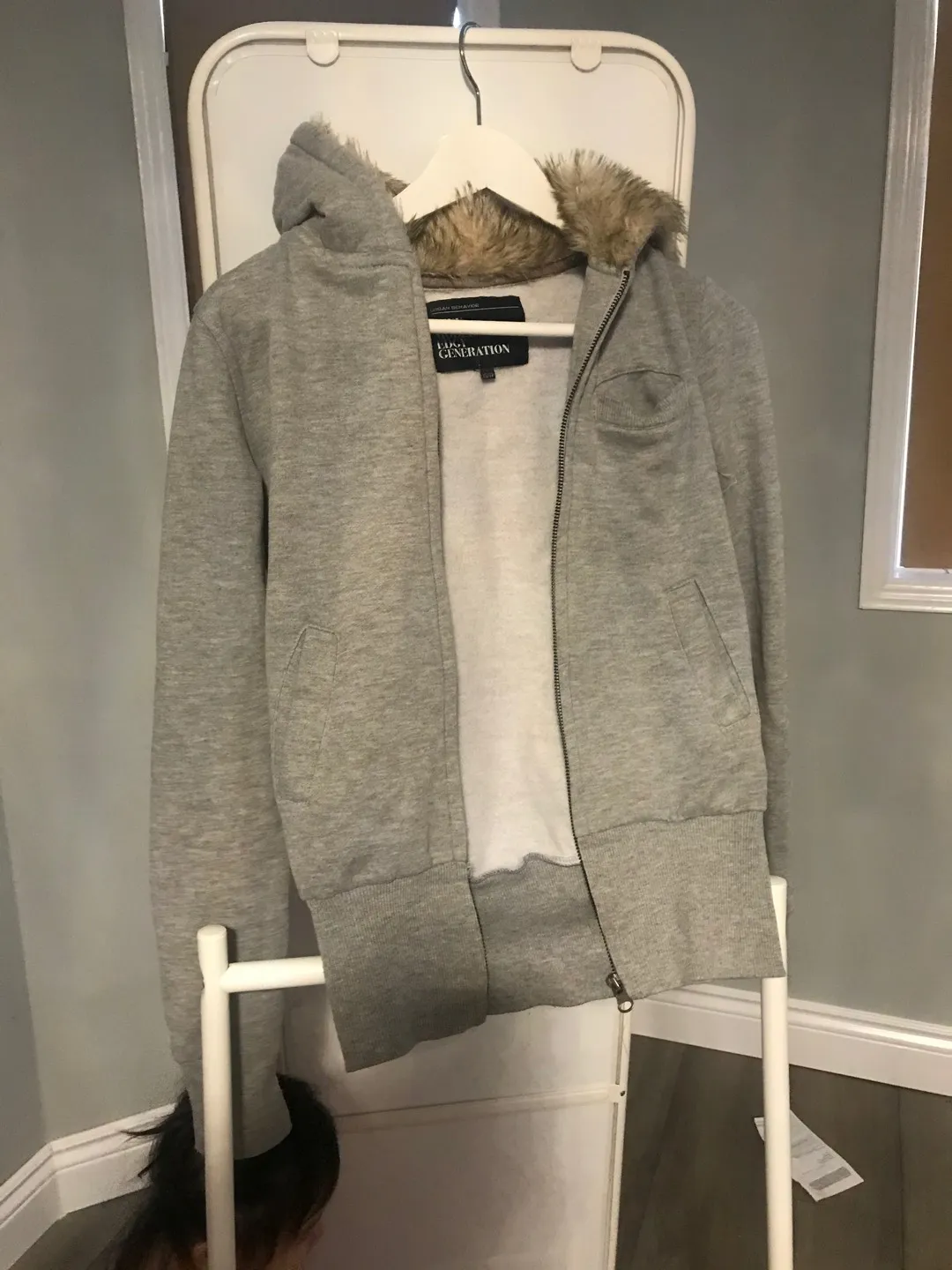 Hoodie with fur and it’s in perfect condition. Size XS