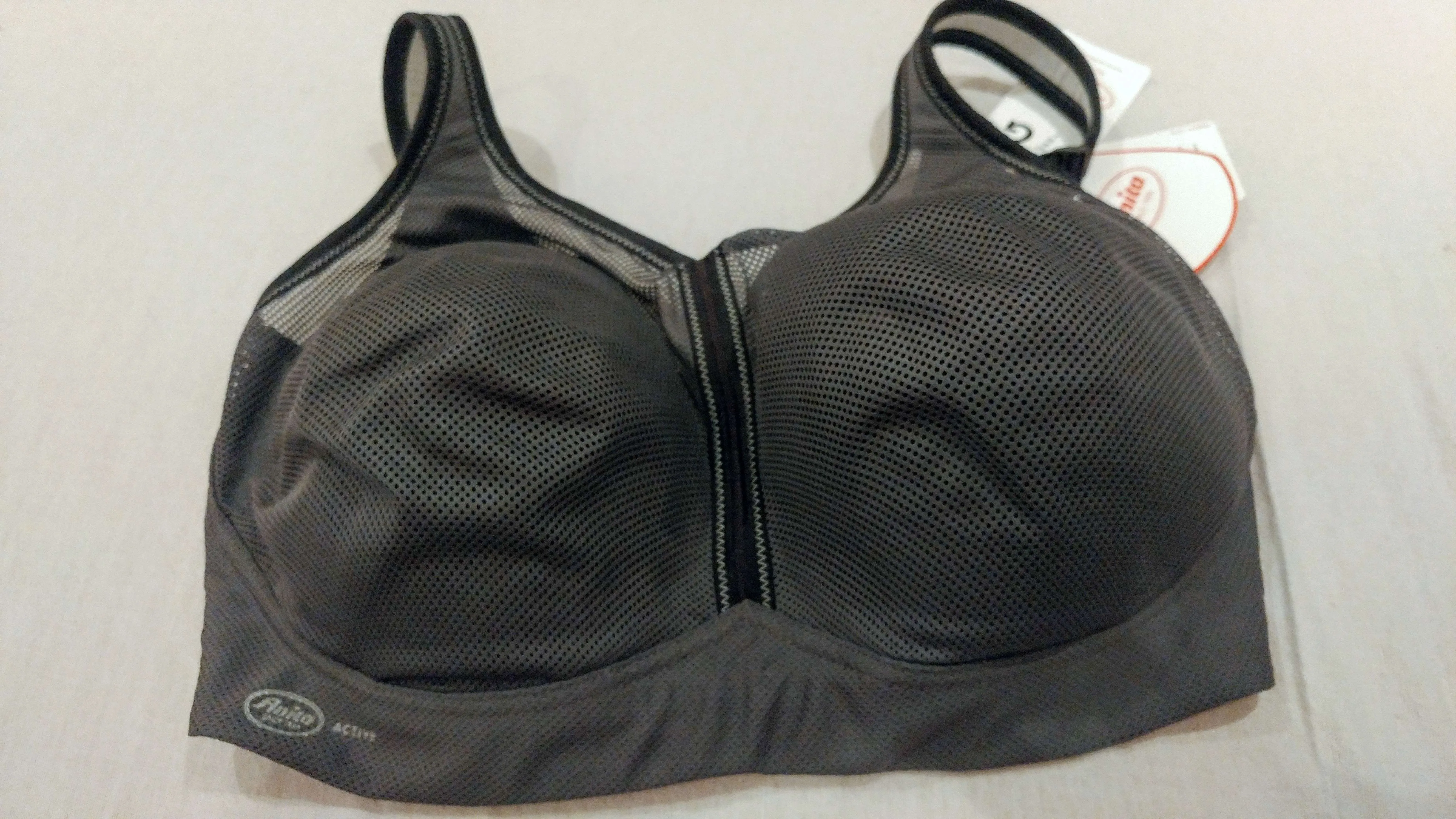 "Anita Active’s Air Control Padded Sports Bra is comfortable and stylish. This wireless sports bra features lightly padded cups for maximum support in regular and plus sizes. The mesh sides and center provide breath-ability and style."