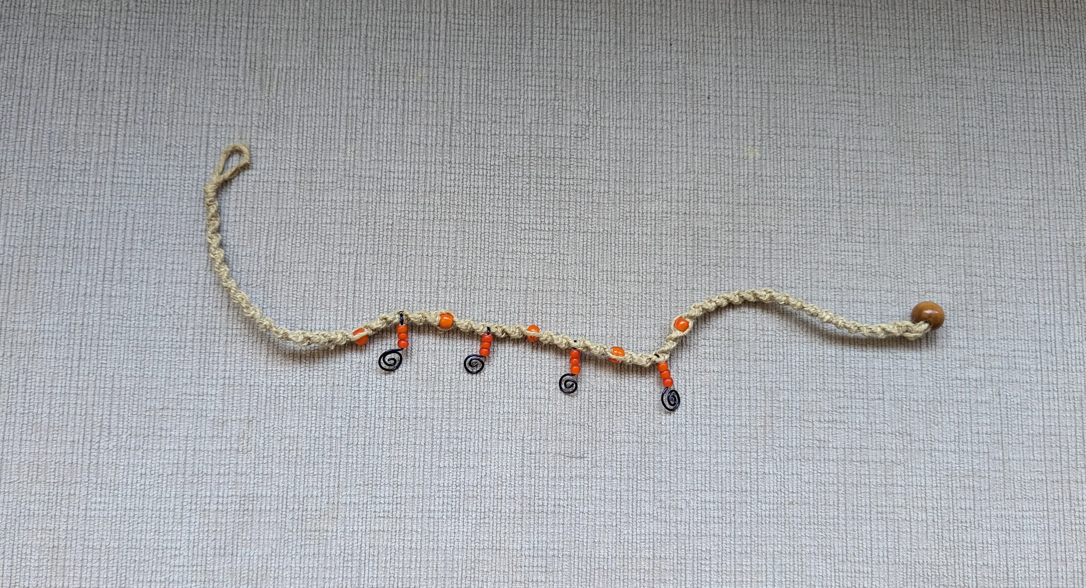 Handmade Hemp Anklet with Orange and Wooden Beads