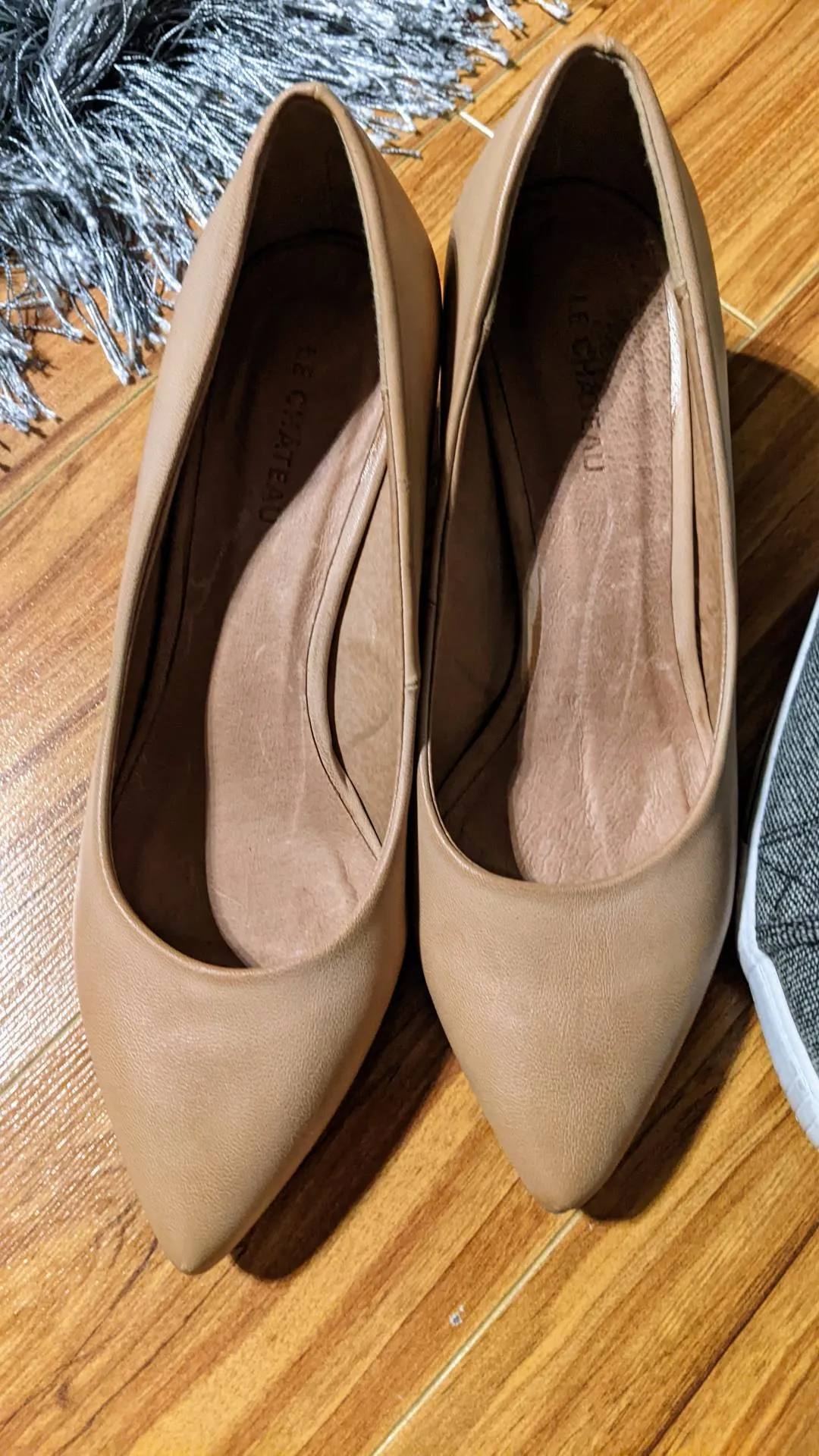Low heels from le Chateau. Maybe worn once or twice. Excellent condition!!