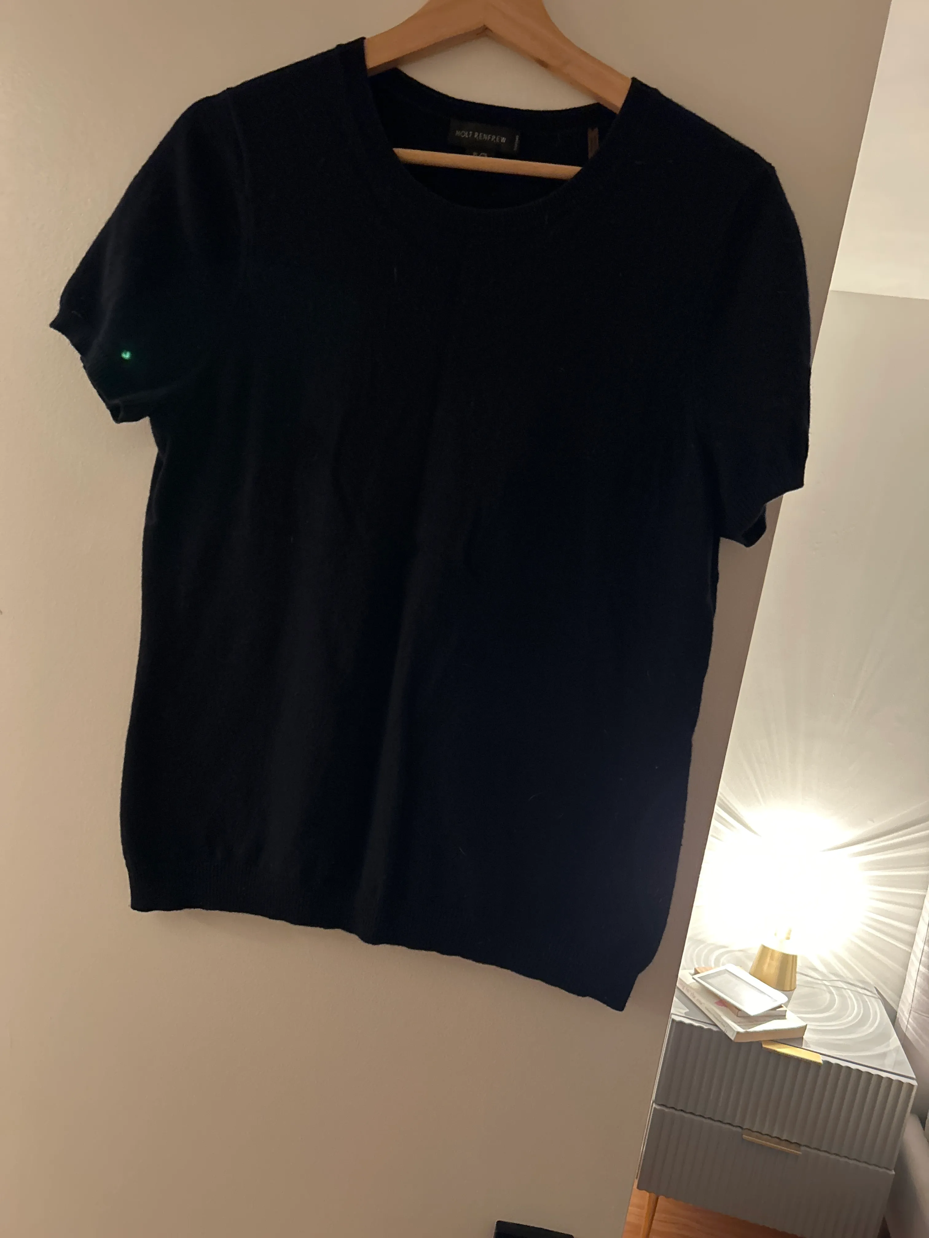 Fits very small. Better for a medium. Deep navy and full cashmere.