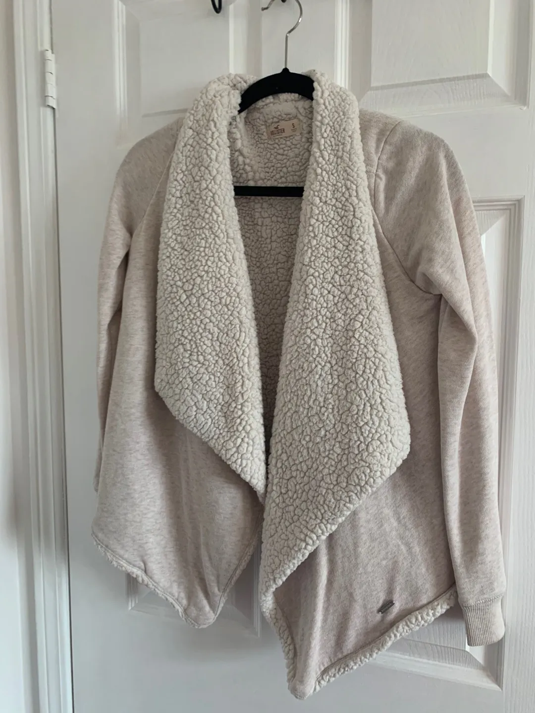 I love this piece but don’t reach for it too often so i’m offering it up to a new home! Inside is soft and warm sherpa material. Outside is a classic sweater material. There is no sherpa in the sleeves - only the front and back. Can fit a XS/S