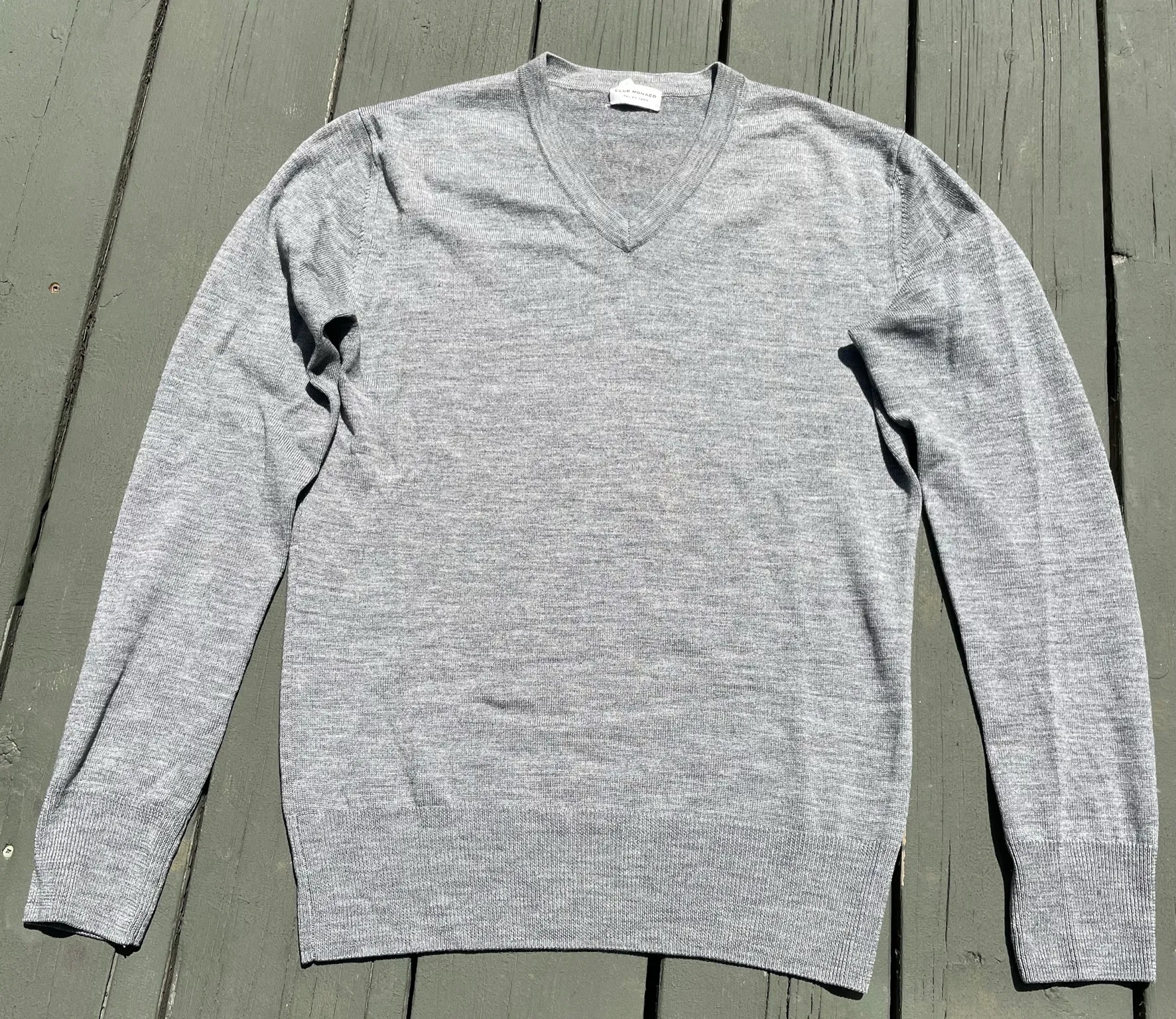 On offer is a gently worn classic merino v-neck sweater from Club Monaco. It's 100% merino wool and in a perfect mid-grey color that matches everything. Worn a handful of times to the office and then forgotten about. No rips, stains, tears, that I can see but check photos, etc. Smoke free and pet free home. Size XS with measurements as follows - Chest 19.5 inches, Shoulders width seam to seam 16.5 inches, Sleeve seam to end of sleeve 25 inches, bottom of collar to bottom of hem 25 inches. I think the retail was $150! Offer me something around the $20-25 value range... I'm open to consumables like food/drink (NOT edibles/weed), such as some groceries, beer, fragrances, some random giftcards, etc... Whatever really. Shoot me an offer! . Location - Pickup at Ossington station preferred but I can commute too (within reason).
