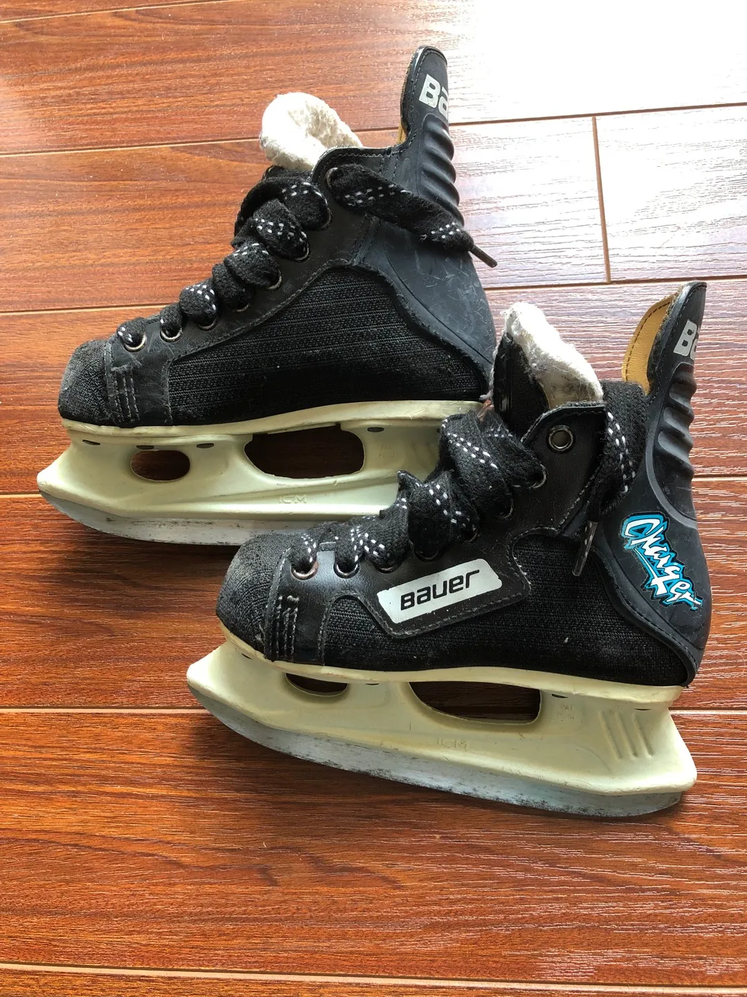 Bauer charger skates. The base is exactly 7”. I’m not an expert on hockey skates sizes but would think they fit size 11/12 feet.