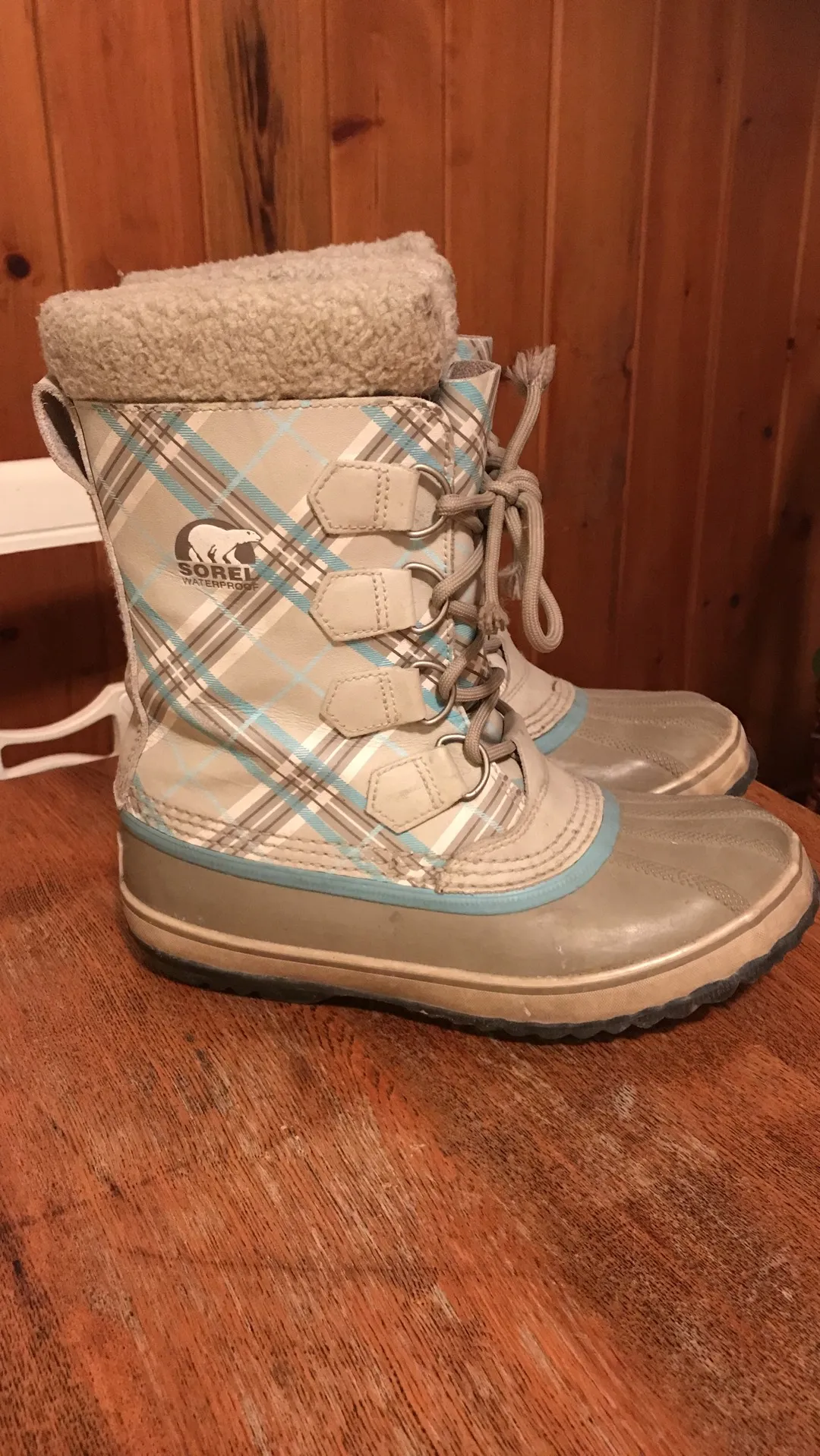 Well loved Sorel boots. Still warm as ever. Ladies size 7.5.