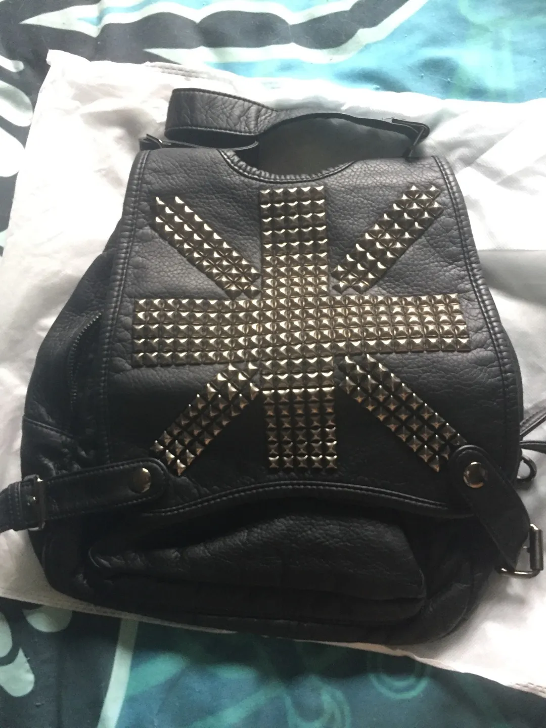 Brand new, never used. It’s not real leather. I ordered it online but it’s smaller than expected so I don’t think I will ever use it :( Can be used as a backpack, shoulder bag or purse. Lots of pockets and compartments. ISO $30 value. I am going to be picky with the is one :)