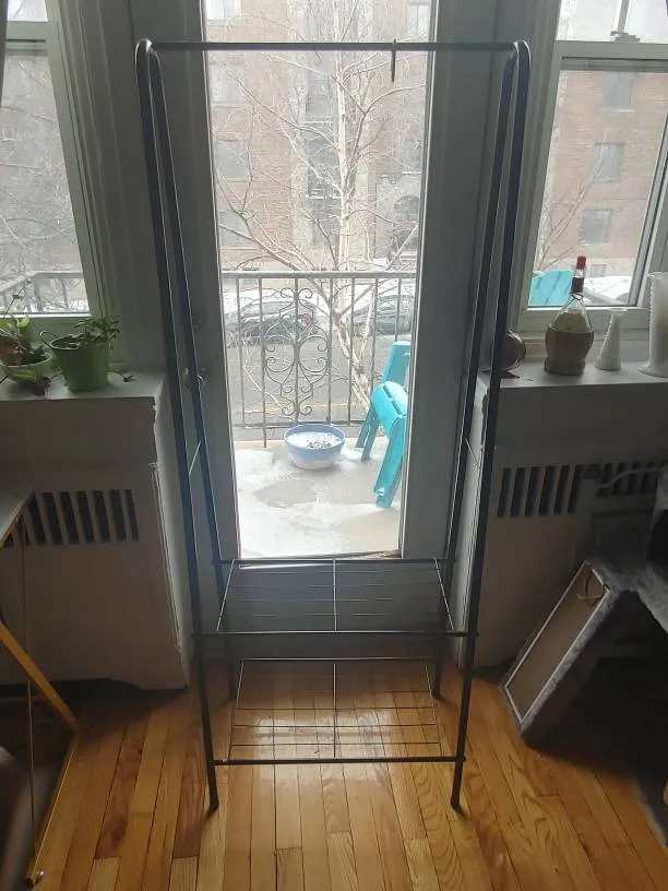 It's a thingy. You can rack clothes. I used it for plants. Comes apart. It's like the second pic, but. Not white.