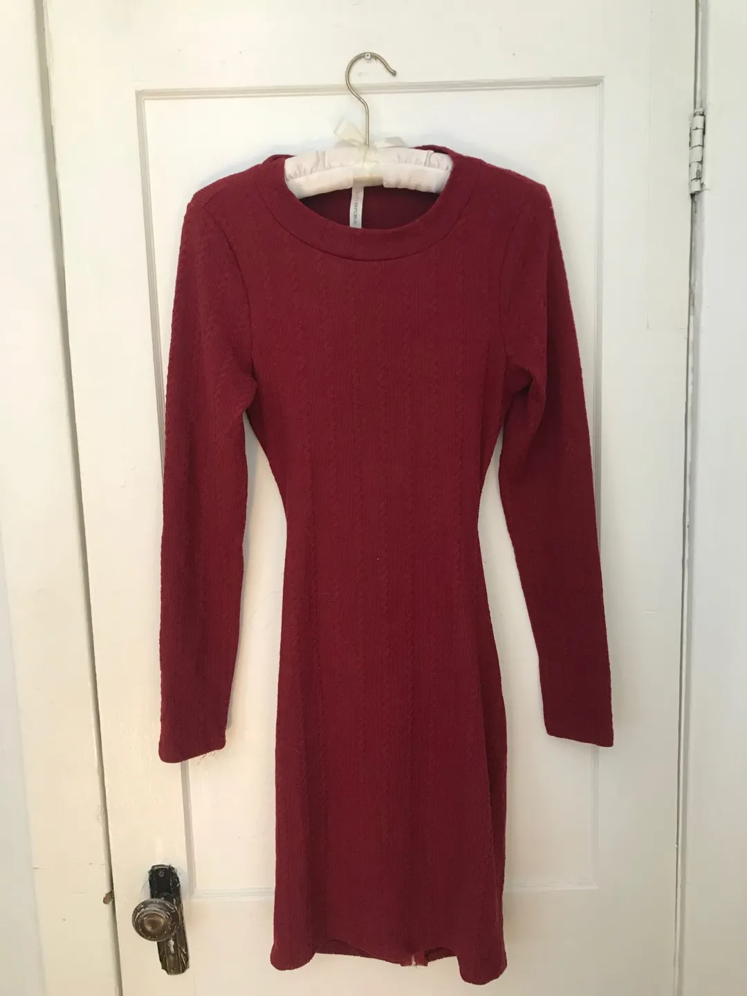 Beautiful red dress Beautiful opening in back Rebunz as it’s too short on me Can’t find a size so would say S/M