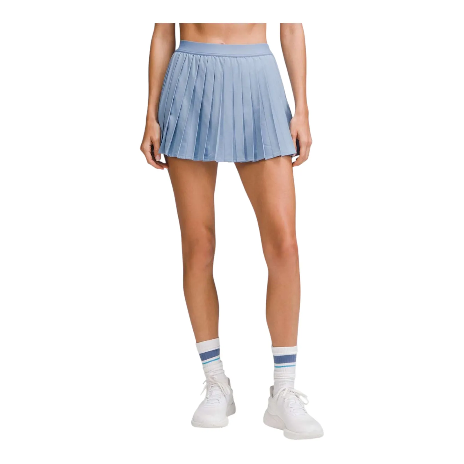 Lululemon High-Rise Pleated Tennis Skirt Size 8 in Blue Willow Excellent condition The lightweight, quick-drying fabric on this pleated tennis skirt will keep you cool and comfortable from first serve to match point. Four-way stretch. Sweat-wicking. High rise. Built-in Luxtreme™ fabric liner is sweat-wicking and four-way stretch with a cool, smooth feel. Stash your stuff in the side drop-in pockets on the short liner. Built-in liner offers extra coverage.