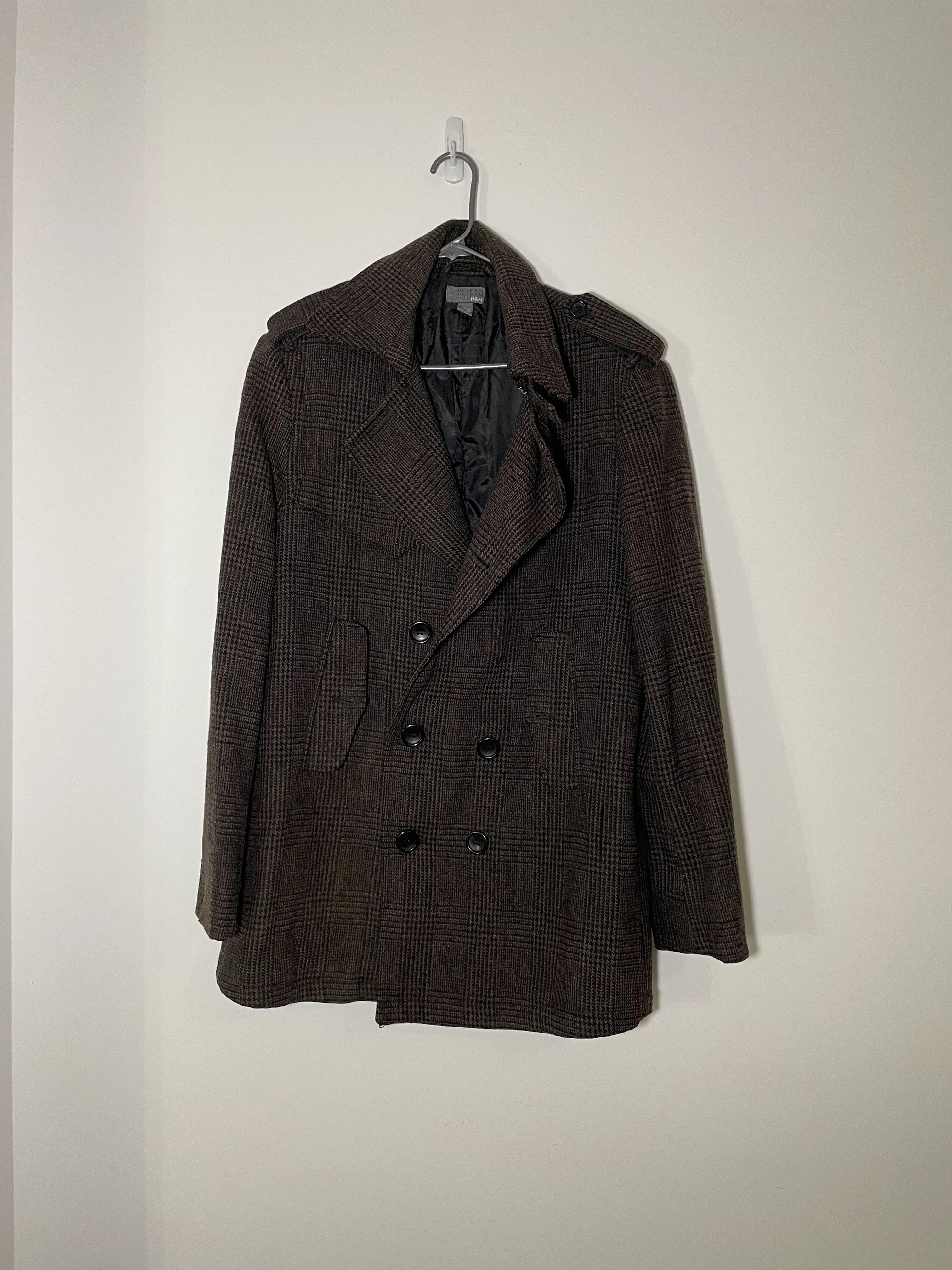 Men’s double breasted pea coat, size 42, wool material, side and inner pockets, excellent condition