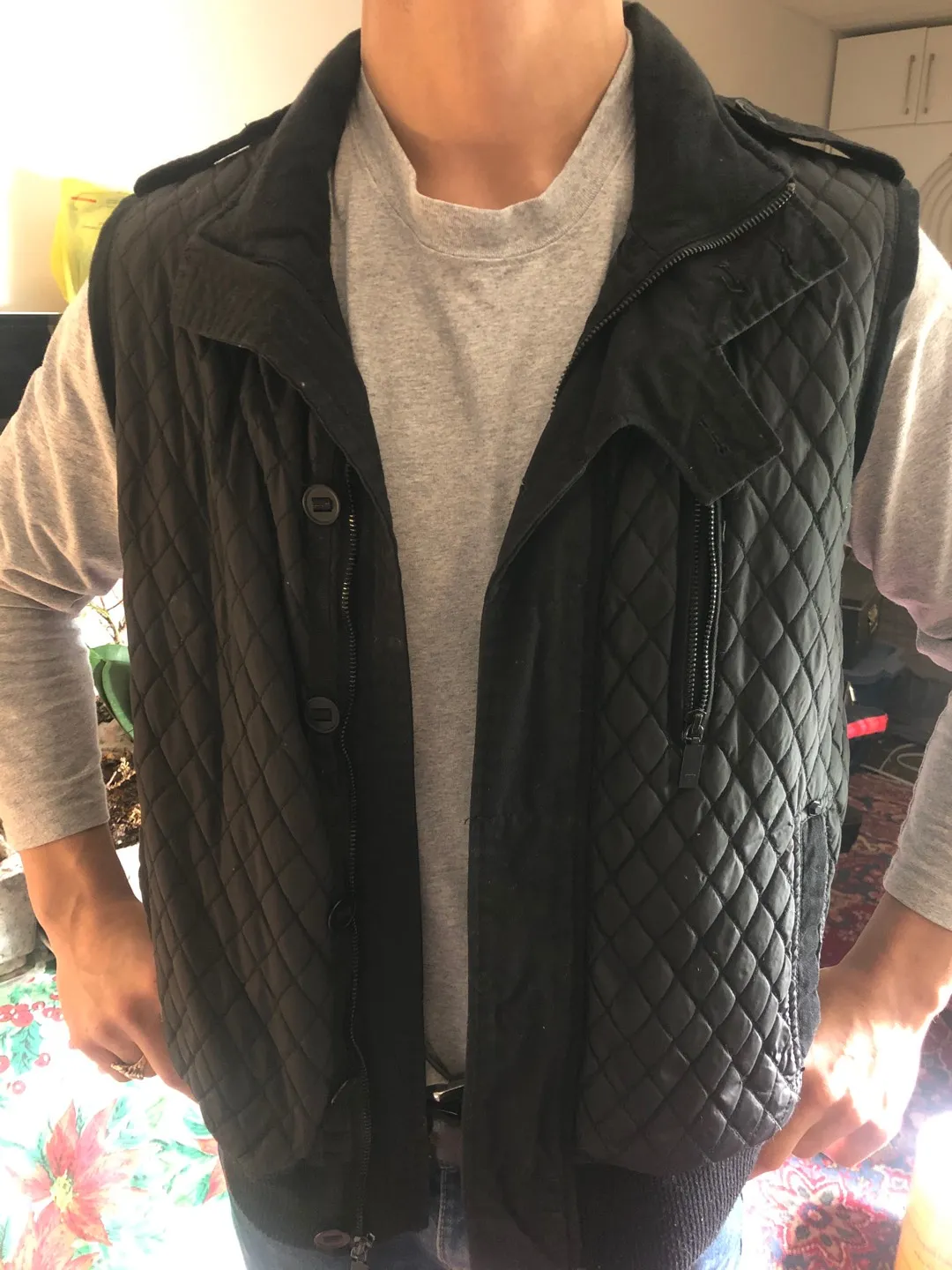 This is a warm quilted design on it. The last photos are from the inside of the vest. This is like new. It has been sitting in the closet.