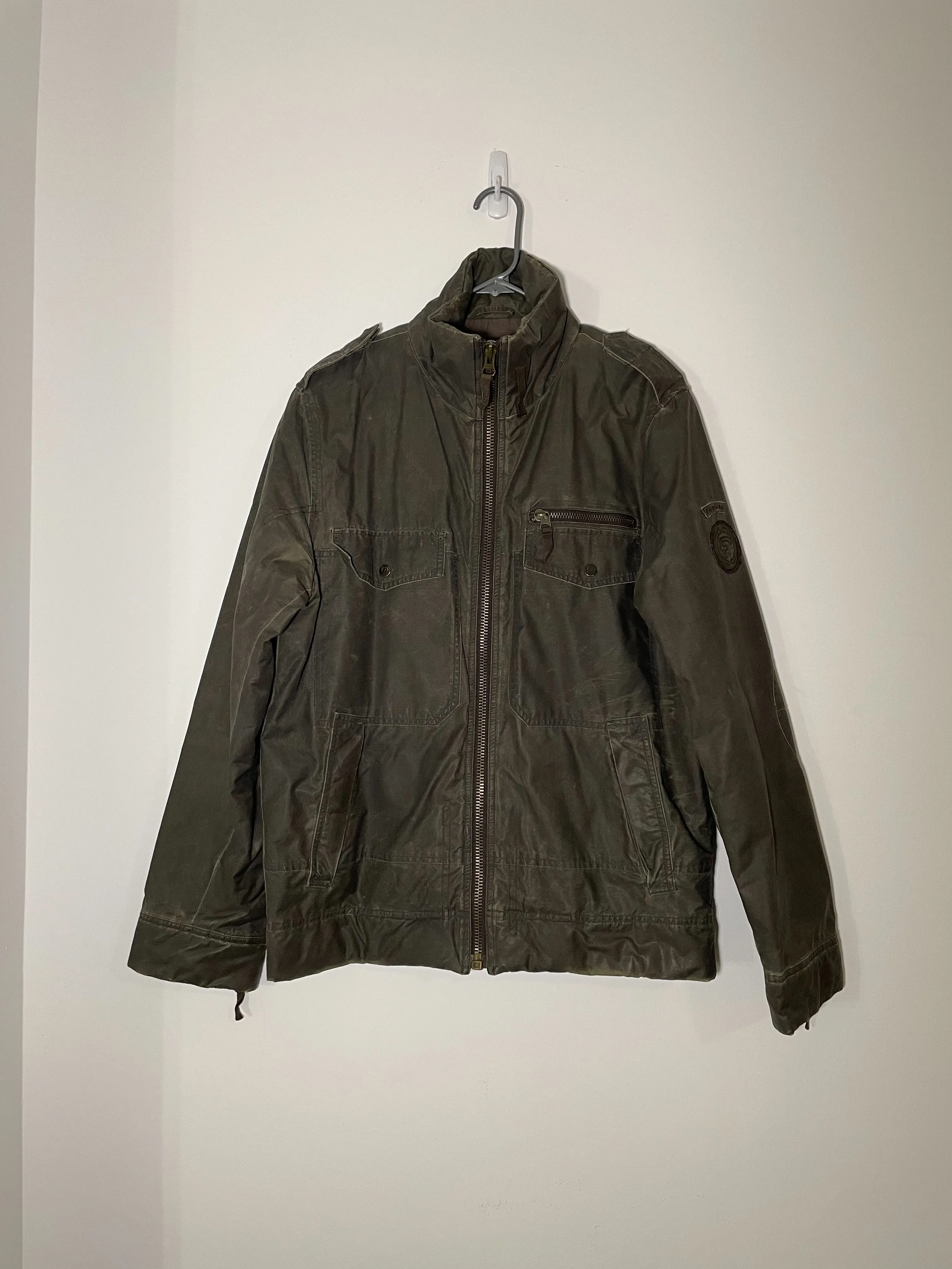 Firetrap Brand Men’s Full Zip Military Jacket, Distressed look, size L, excellent condition