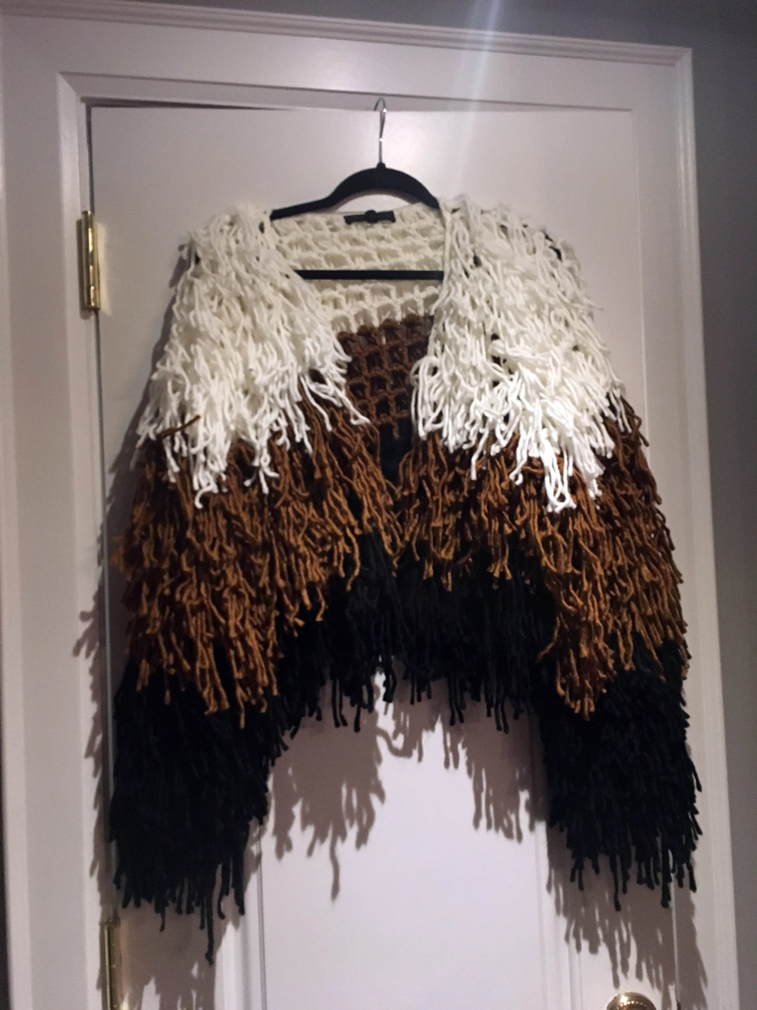 jacket = MISSGUIDED premium camel colour block shaggy knitted cardigan (size M)