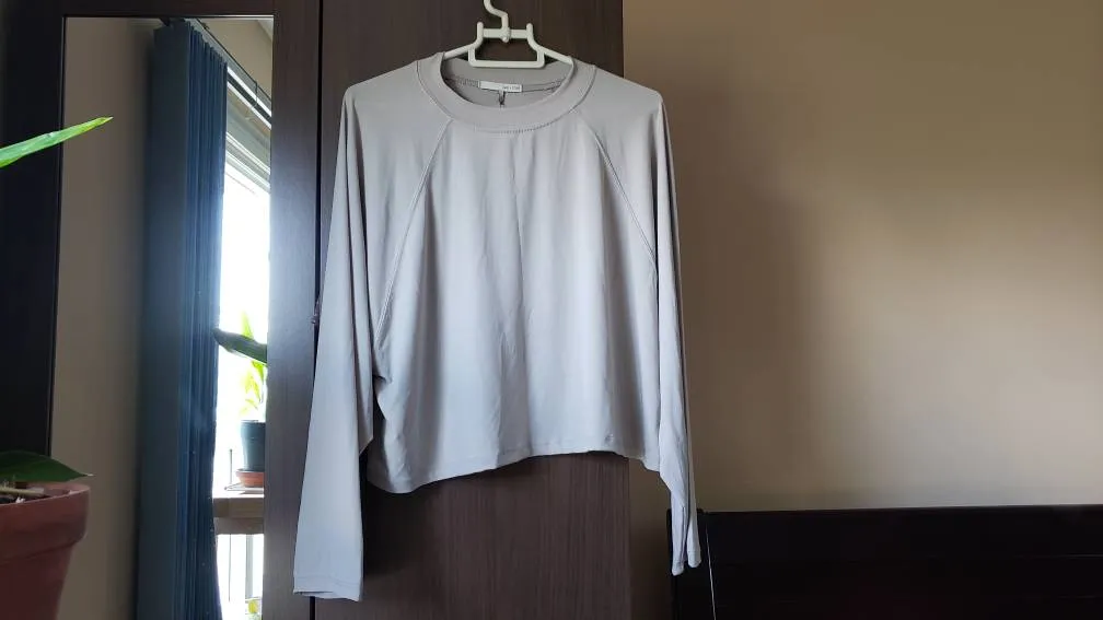 New with tags, one size. Loose and flowy minimalist top. Slightly cropped with relaxed deep shoulders. Light mossy grey color. So pretty but I just cant pull it off. New with tags. !