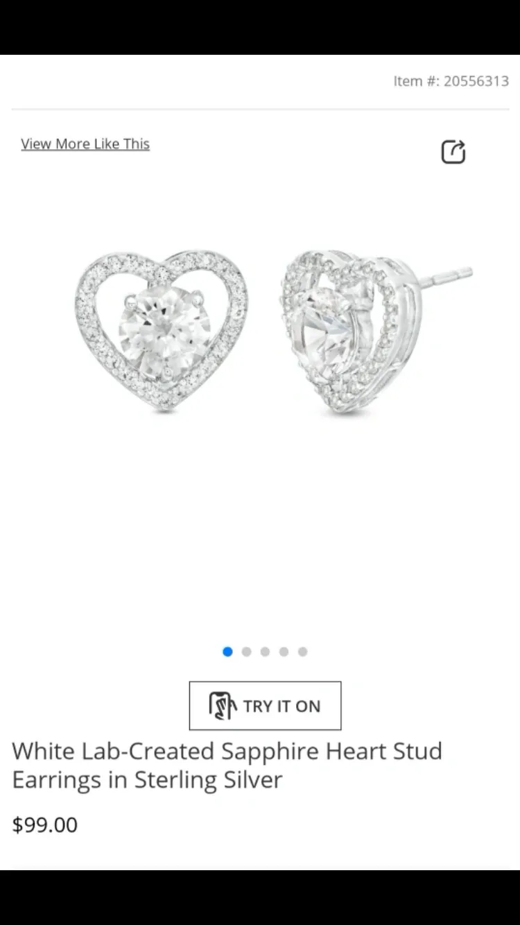 Selling a pair of heart stud earrings from Peoples Jewellers. These are white lab-created sapphire heart stud earrings in sterling silver.