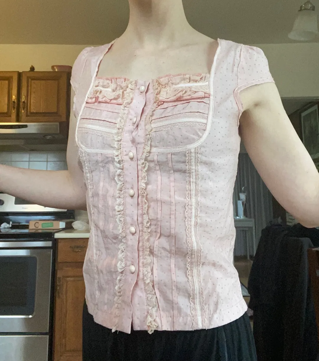 I’m a size small-medium and it fits me, doesn’t have a tag with an official size. Very detailed, hella cute, birthday cake vibes 🥰