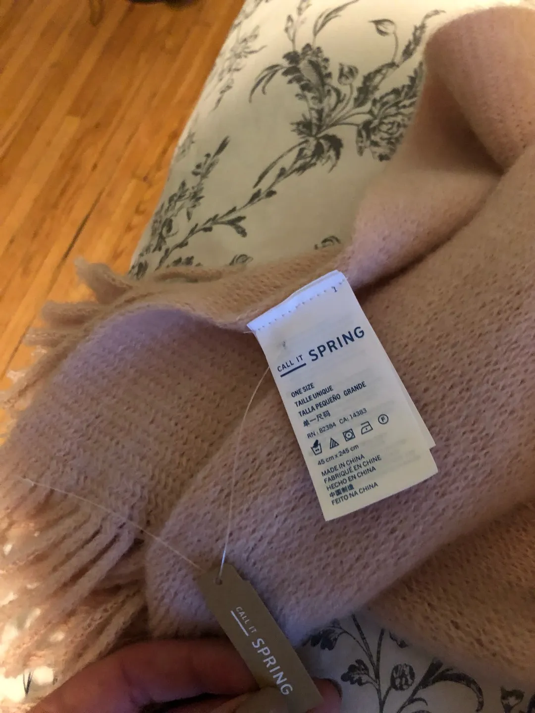 Super duper soft. It’s new from Call it Spring. I bought it online thinking it was light but it’s actually super heavy and warm. Very long too. ISO 2000 BTZ.
