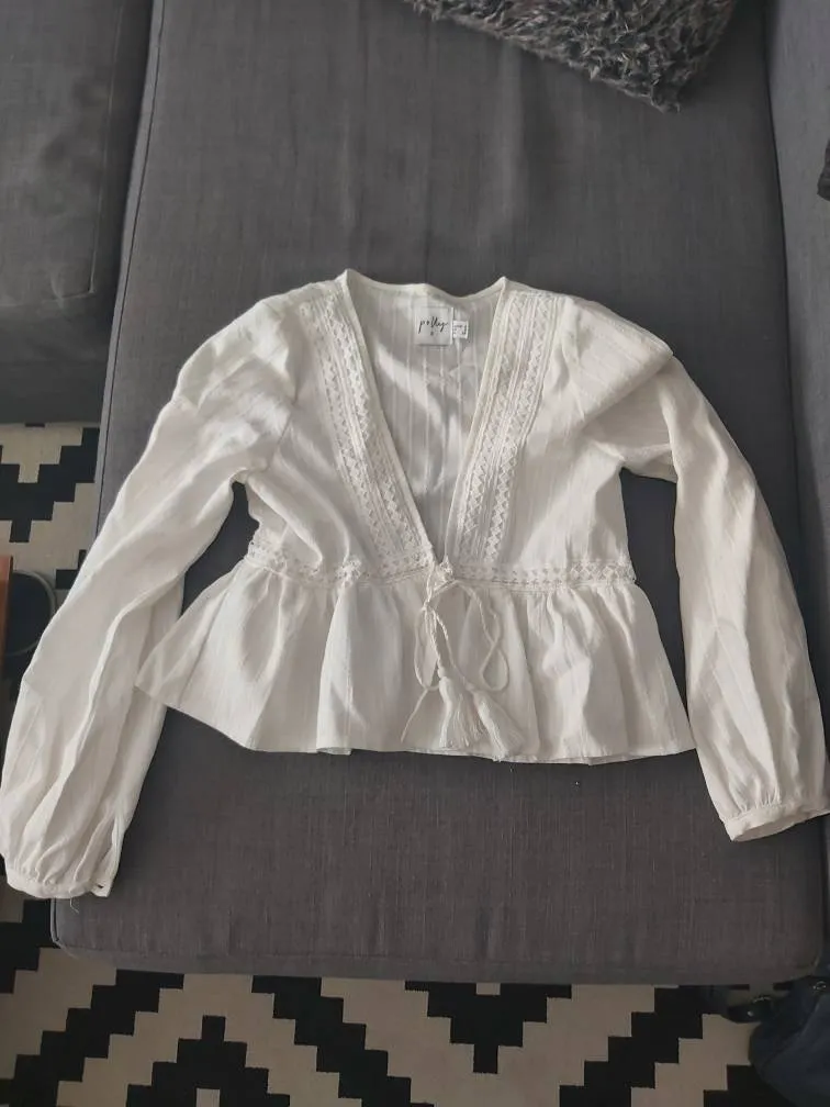 Fits XS - super cute boho top. But too small around my chest/waist. Comes to pants line/slightly cropped