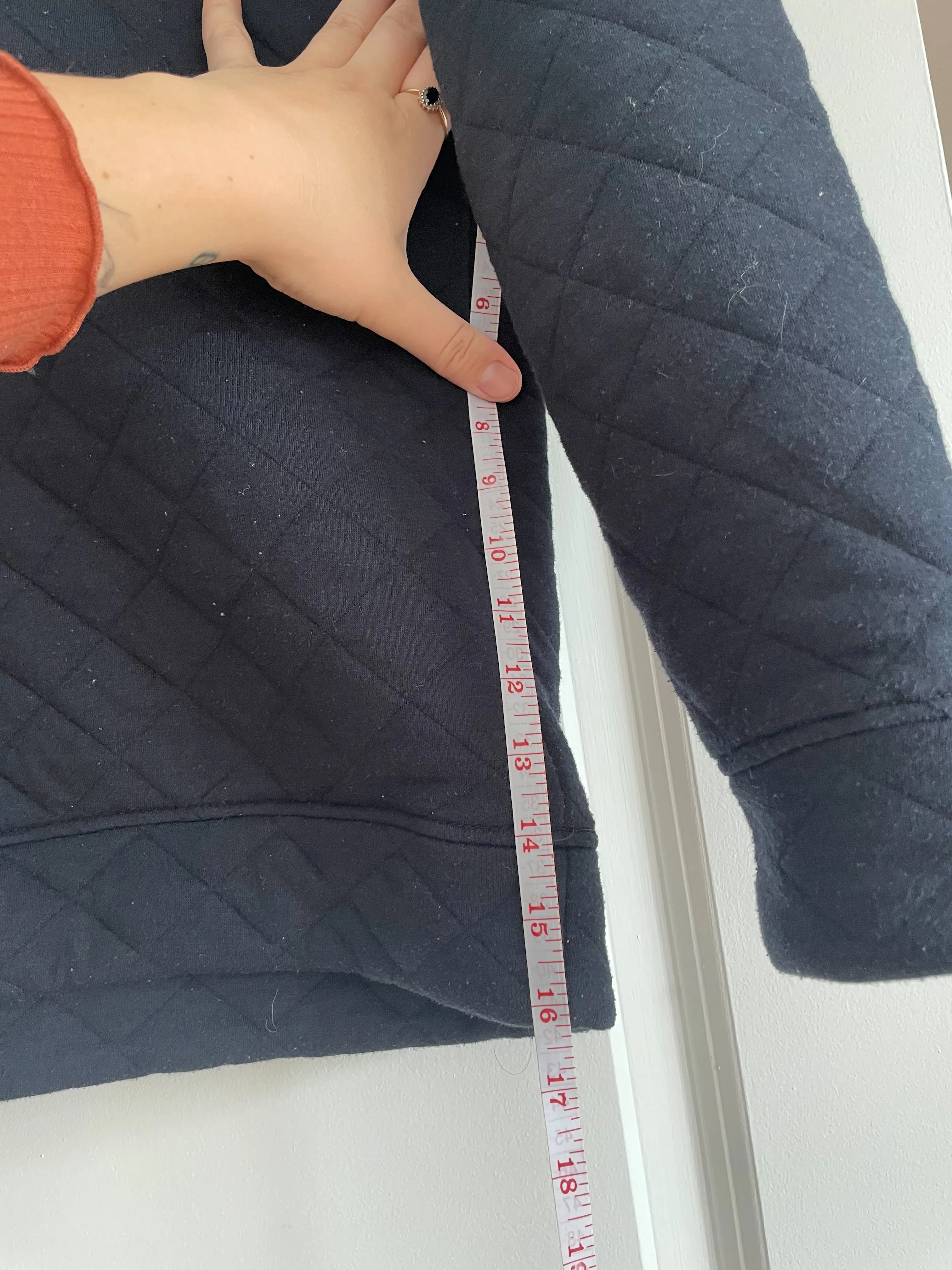 Navy. Jersey / Jumper. Quilted cotton polyester J American Very soft and comfy. Too small for me. (I’m 10-14 on top 14-16 on bottom