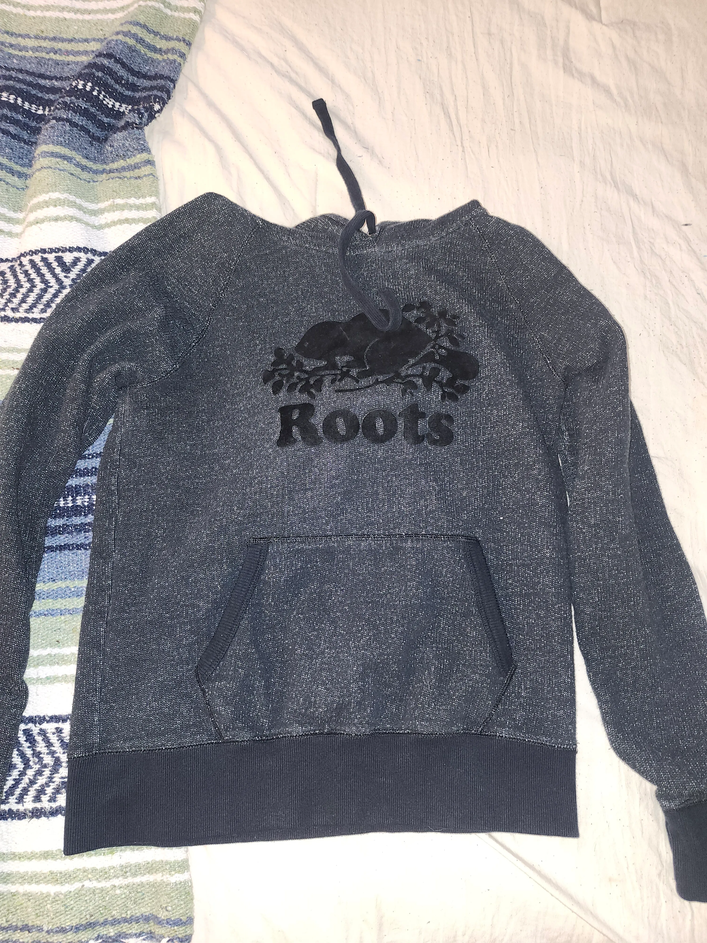 comfy Roots hoodie and matching sweatpants set! Both are a size M and in great condition. Perfect for lounging around the house or running errands. The hoodie features the classic Roots logo, and the sweatpants have a drawstring waist for a comfortable fit