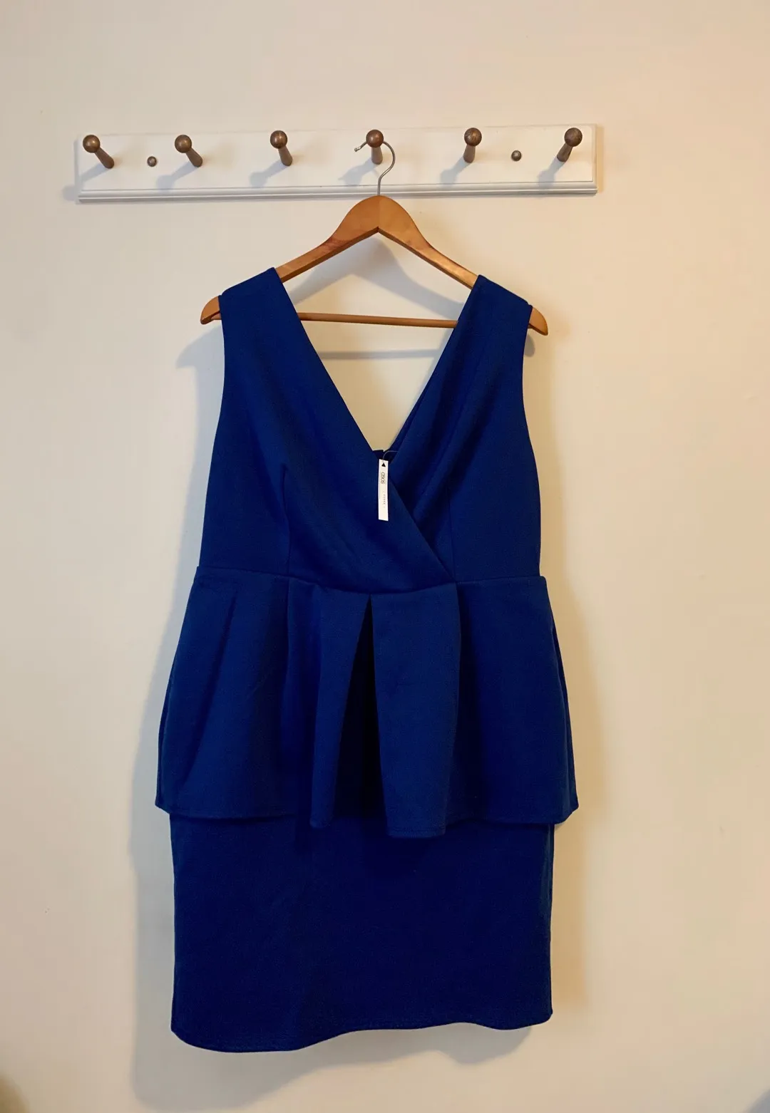 Brand new with tags! Total blue peplum dress from ASOS. Zipper up the back. Size 14.