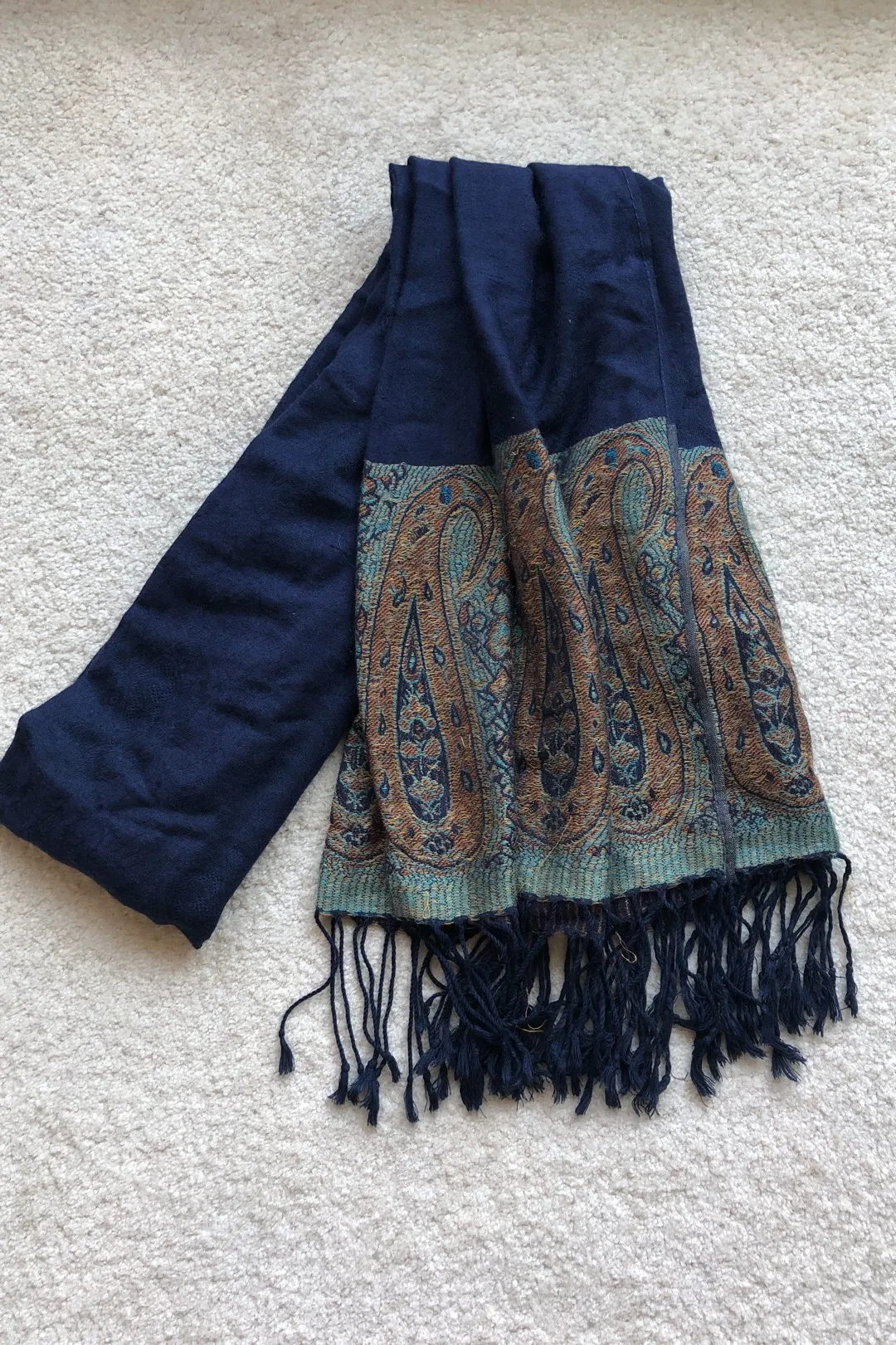 Beautiful blue scarf Good condition, a few pulled threads in the embroidery