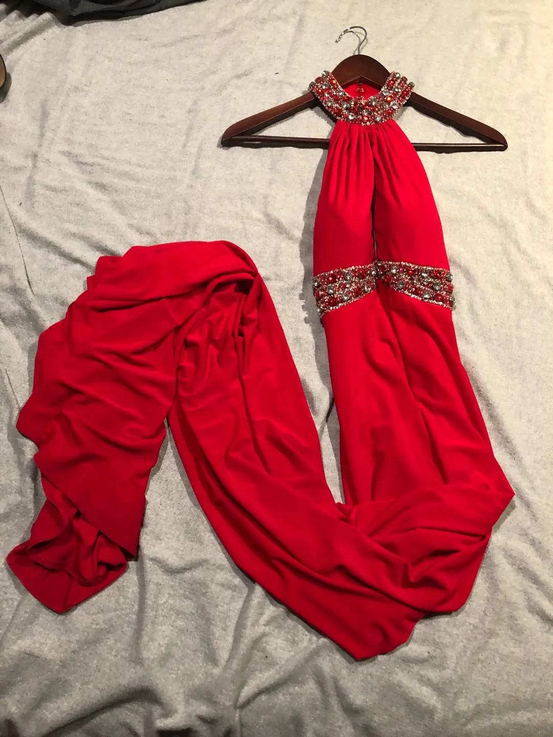 Worn once, to prom. Looks new, size 4 and would fit someone 5’6” or 5’7”.