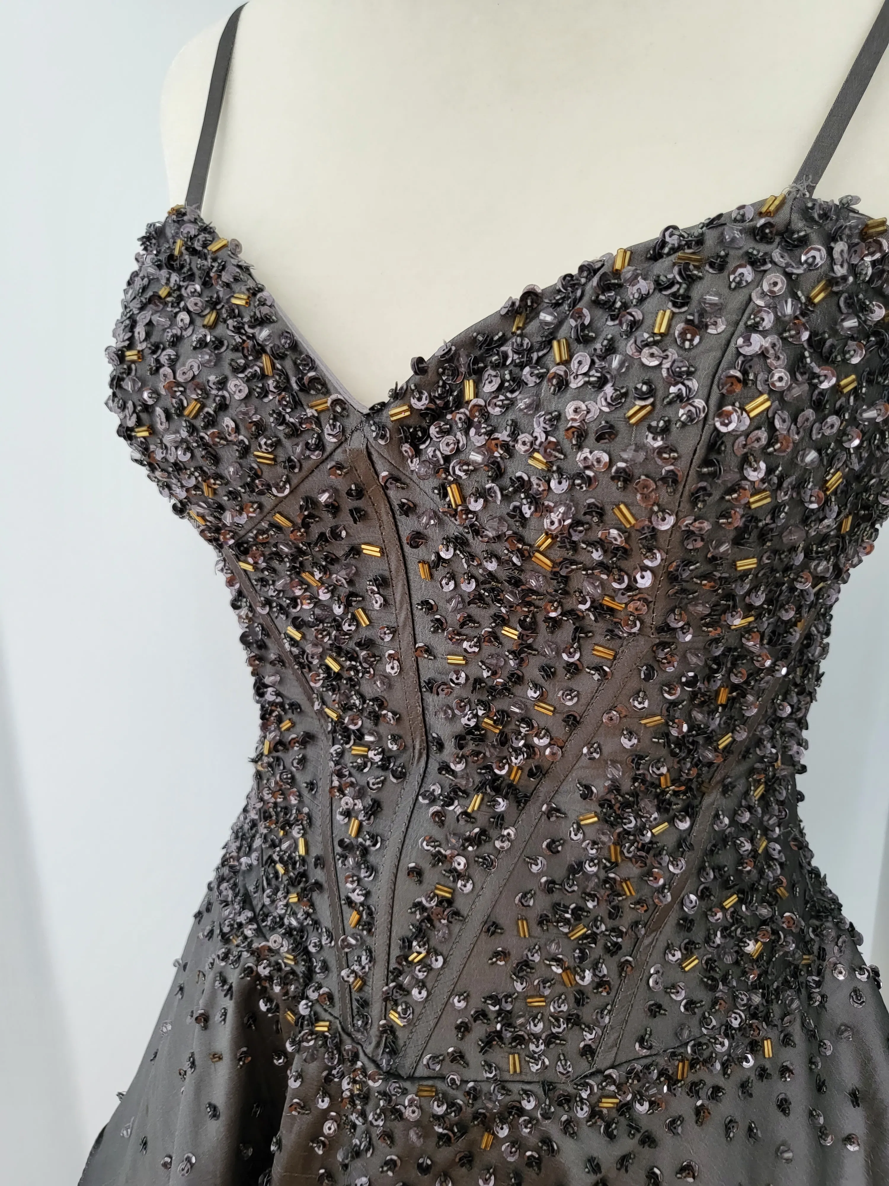 Tags are cut off but was never worn. Beading details are gorgeous. Dress has multiple layers with tulle, and lands just above the knee.