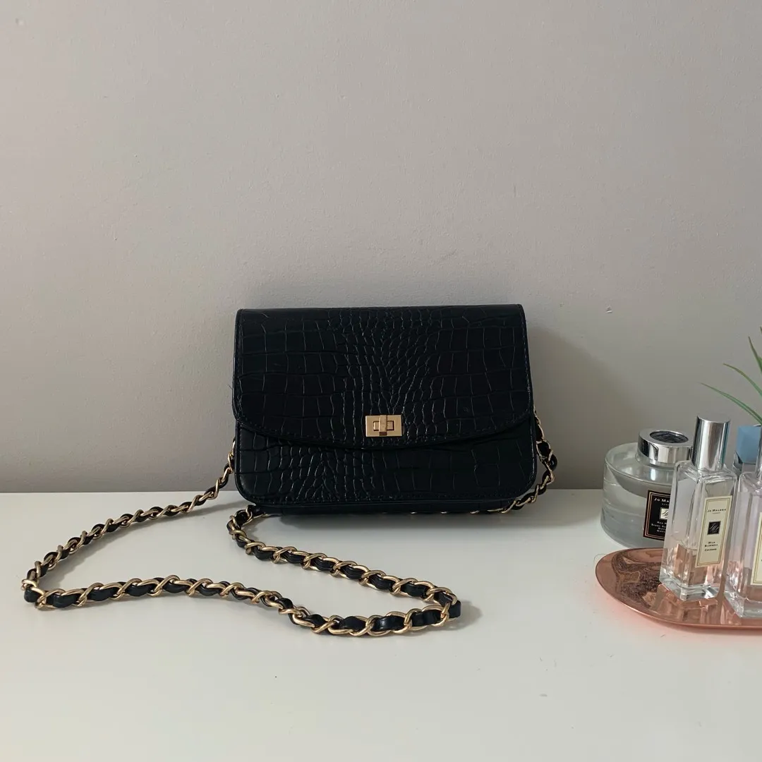 A cute mini box bag with chain straps and crocodile texture! Worn max 10 times and in excellent condition!