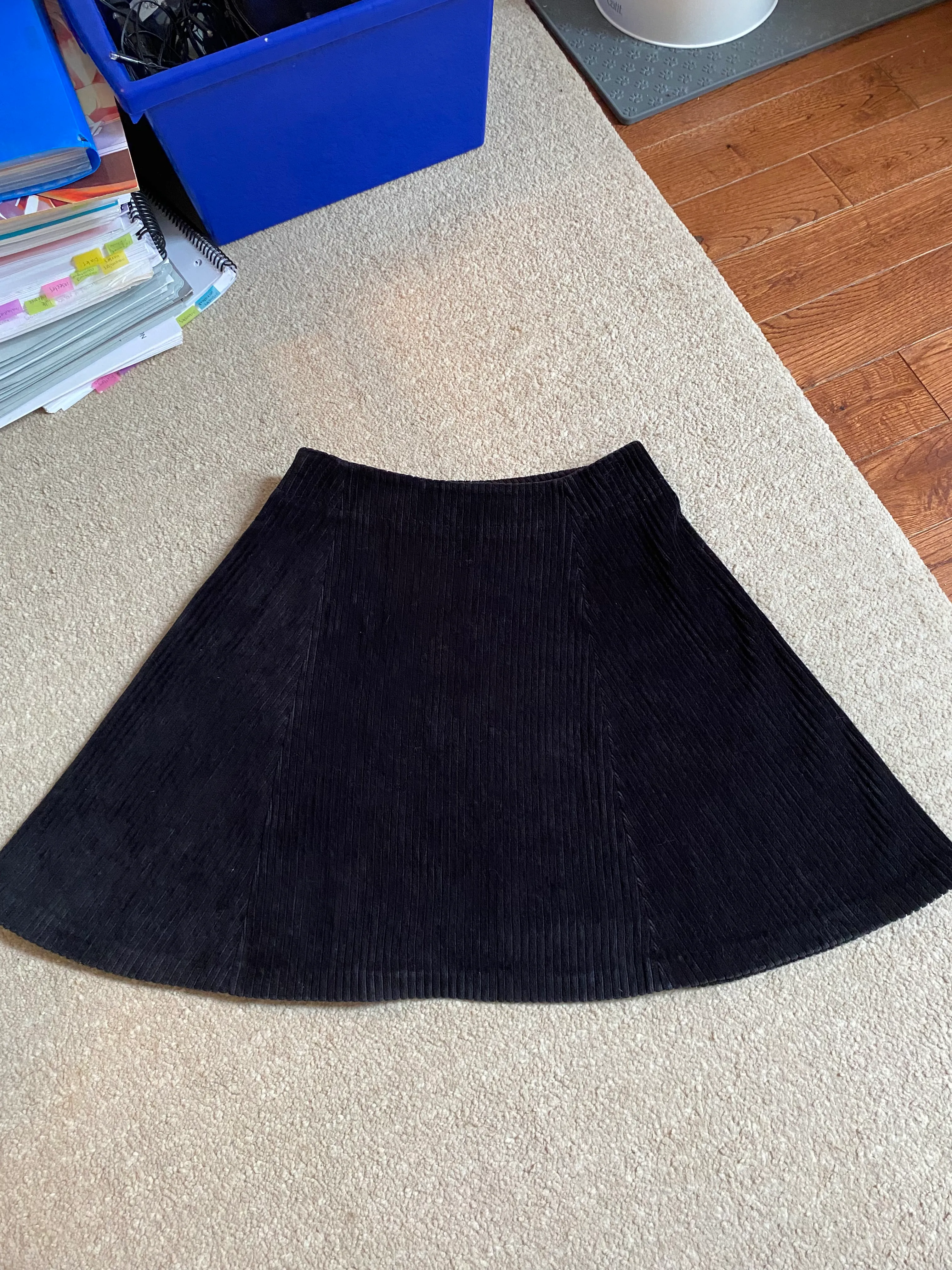 Size xs and has a zipper on the side so waist is not elastic. Has no pockets