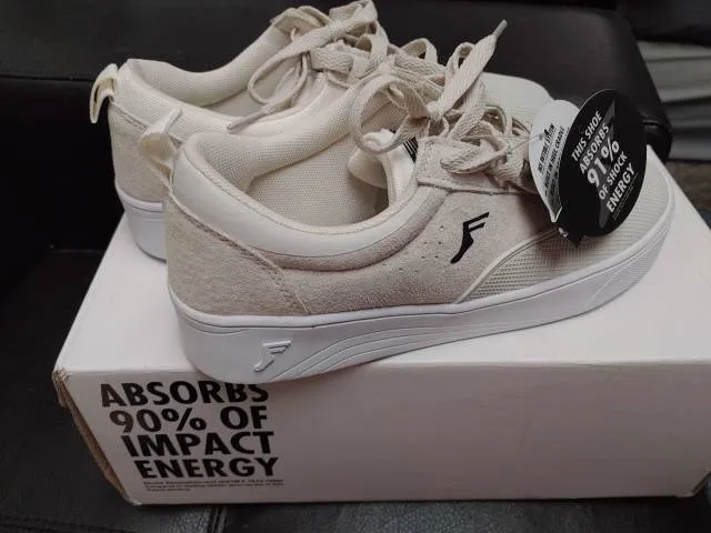Low impact sneaker. Size 7 mens, 8.5 women's. Off-white, brand new, never worn. Quality skateboarding shoe, but great for walking/working.