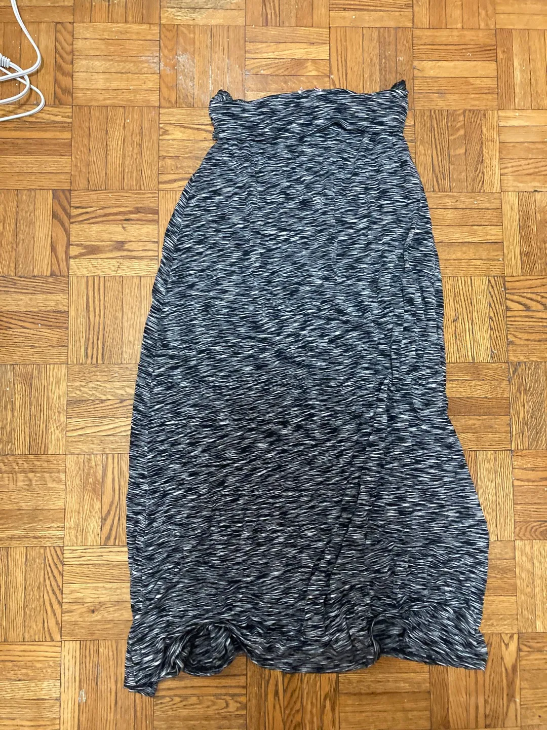 Slightly flared, super stretchy! No size but I’d say it’s a small.