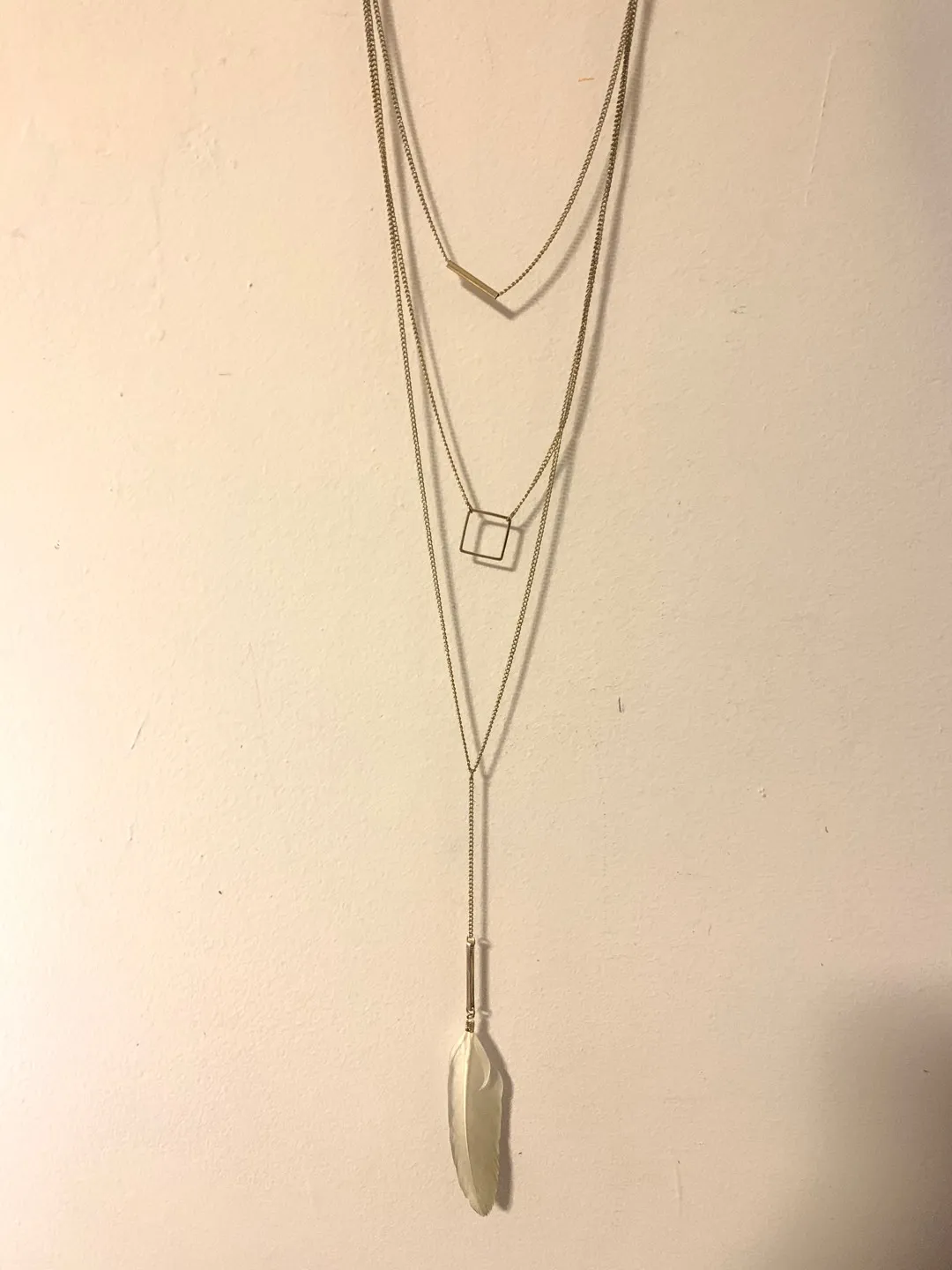 EUC Three Layer Feather Necklace. Worn it a couple of times to work, very light and minimalistic. #EUC#Necklace