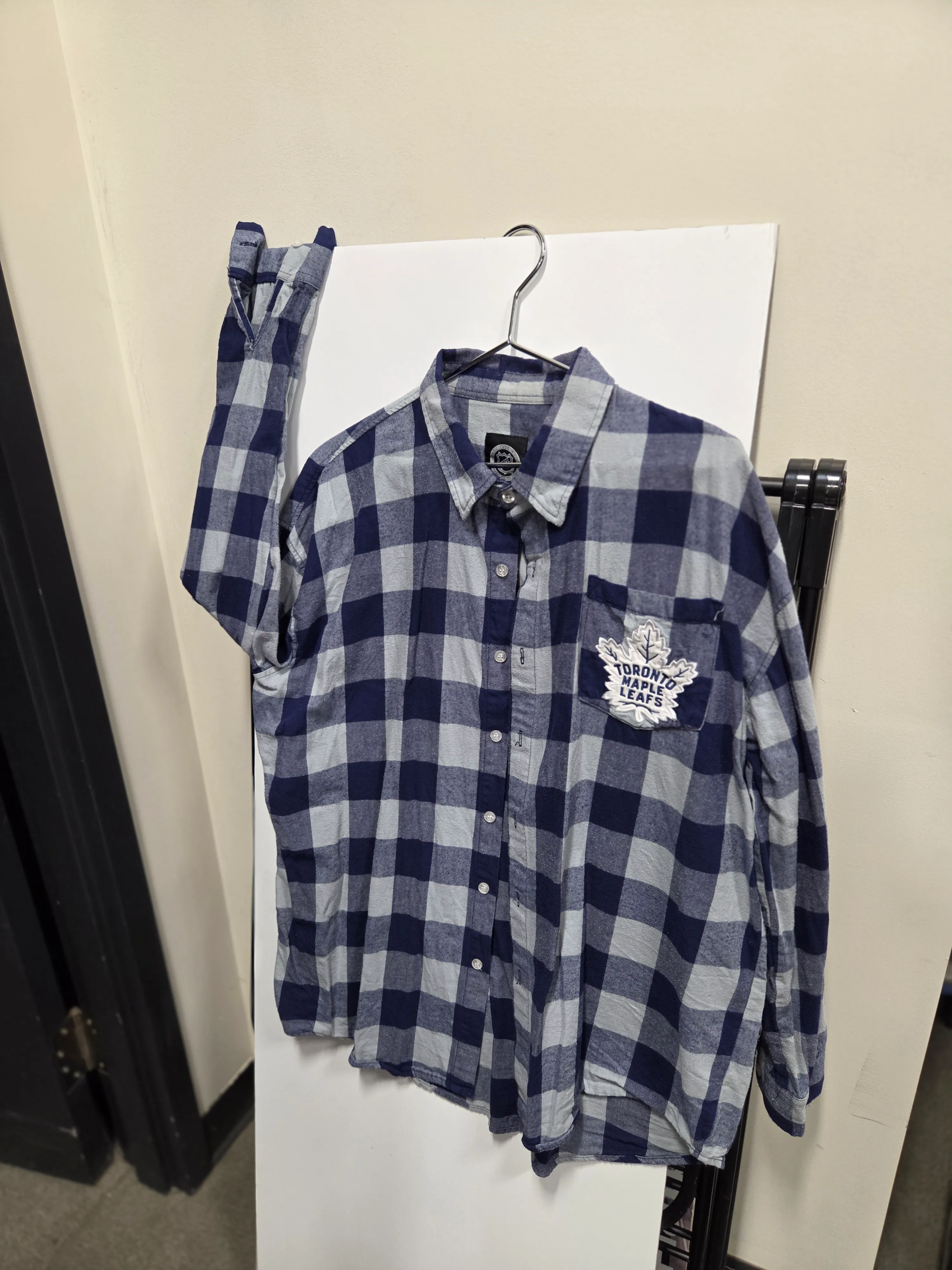 Used but life left in it. Size large Toronto Maple Leafs official merchandise. Thick plaid winter long sleeve shirt. Large. will take btz if you can pick up during 730 to 430 Monday to friday at 391 attwell drive