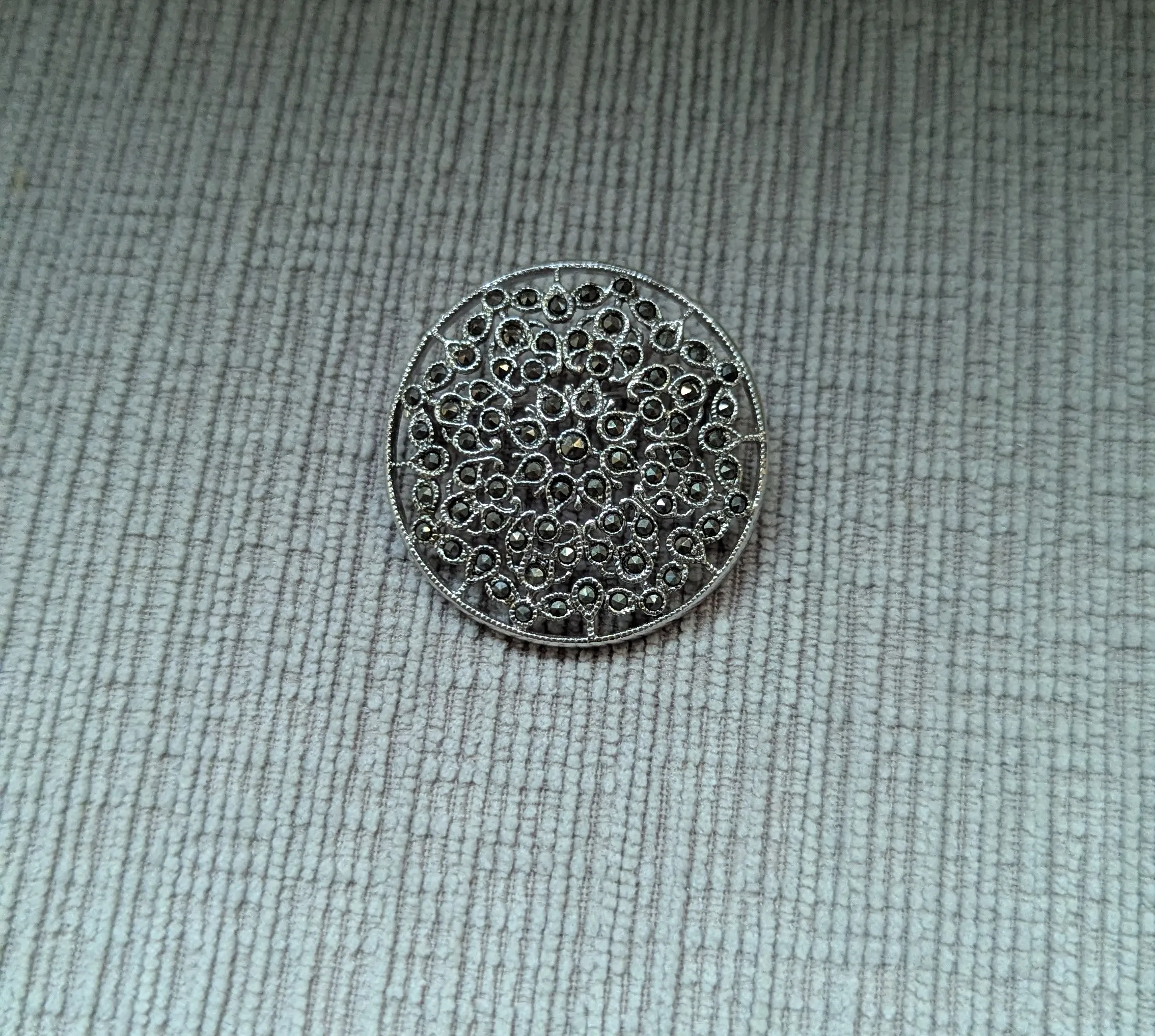 A vintage silver tone brooch. It's in great condition and has a lovely intricate design. Perfect for adding a touch of elegance to any outfit!