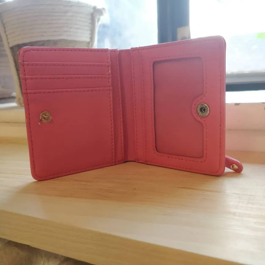Compact pink wallet with ID window and zip coin compartment