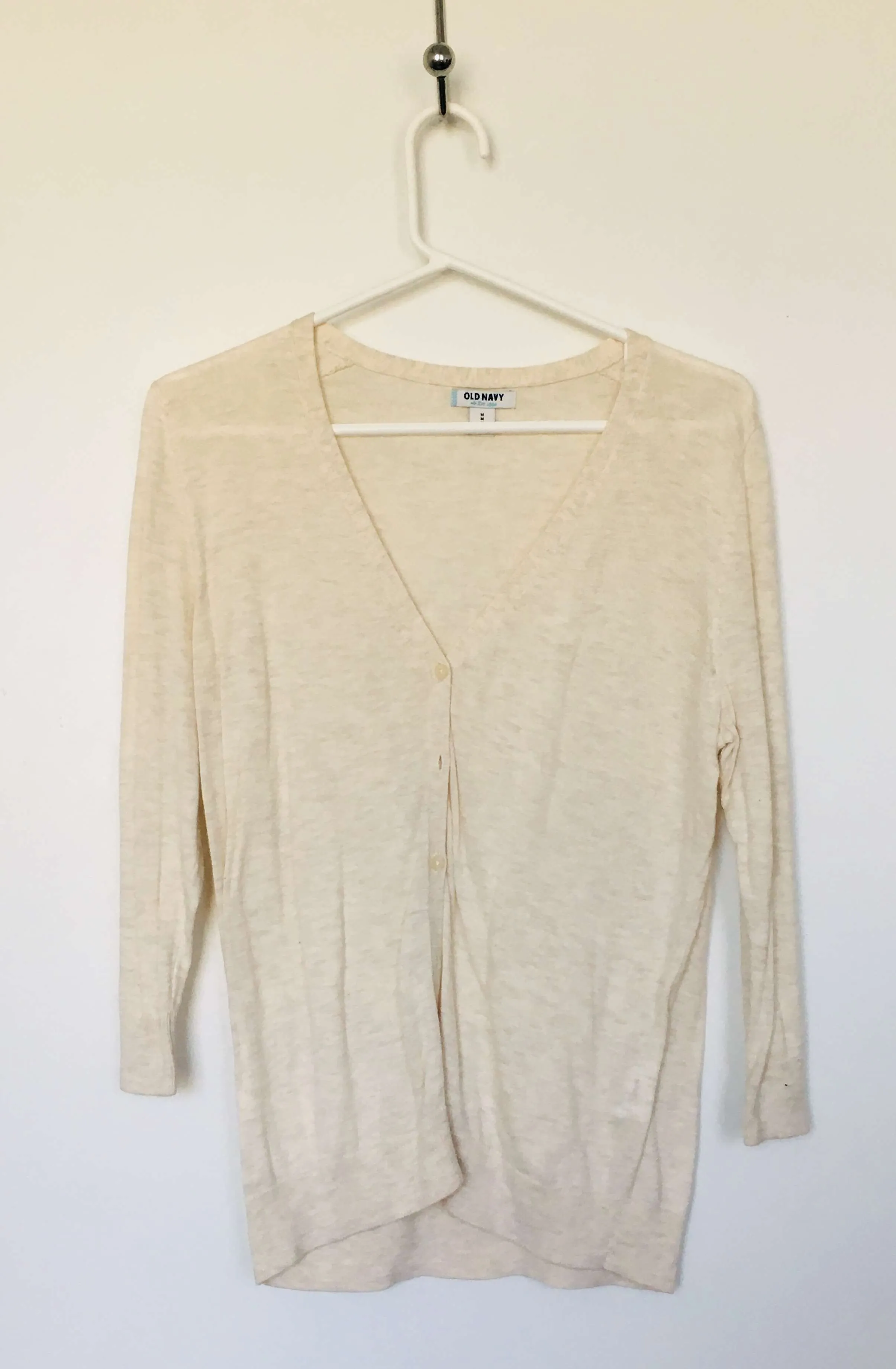 Fits M-L or S if you want more oversized Both from Old Navy 1st is an oatmeal colour and 2nd is a cream, both more lightweight material Happy to bundle this with something else from my profile!