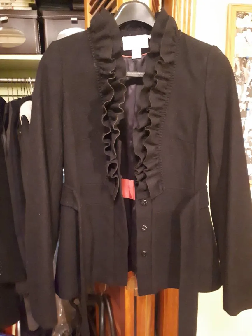 H&M black wool bomber jacket. Size 8. Missing one button. Originally $80.