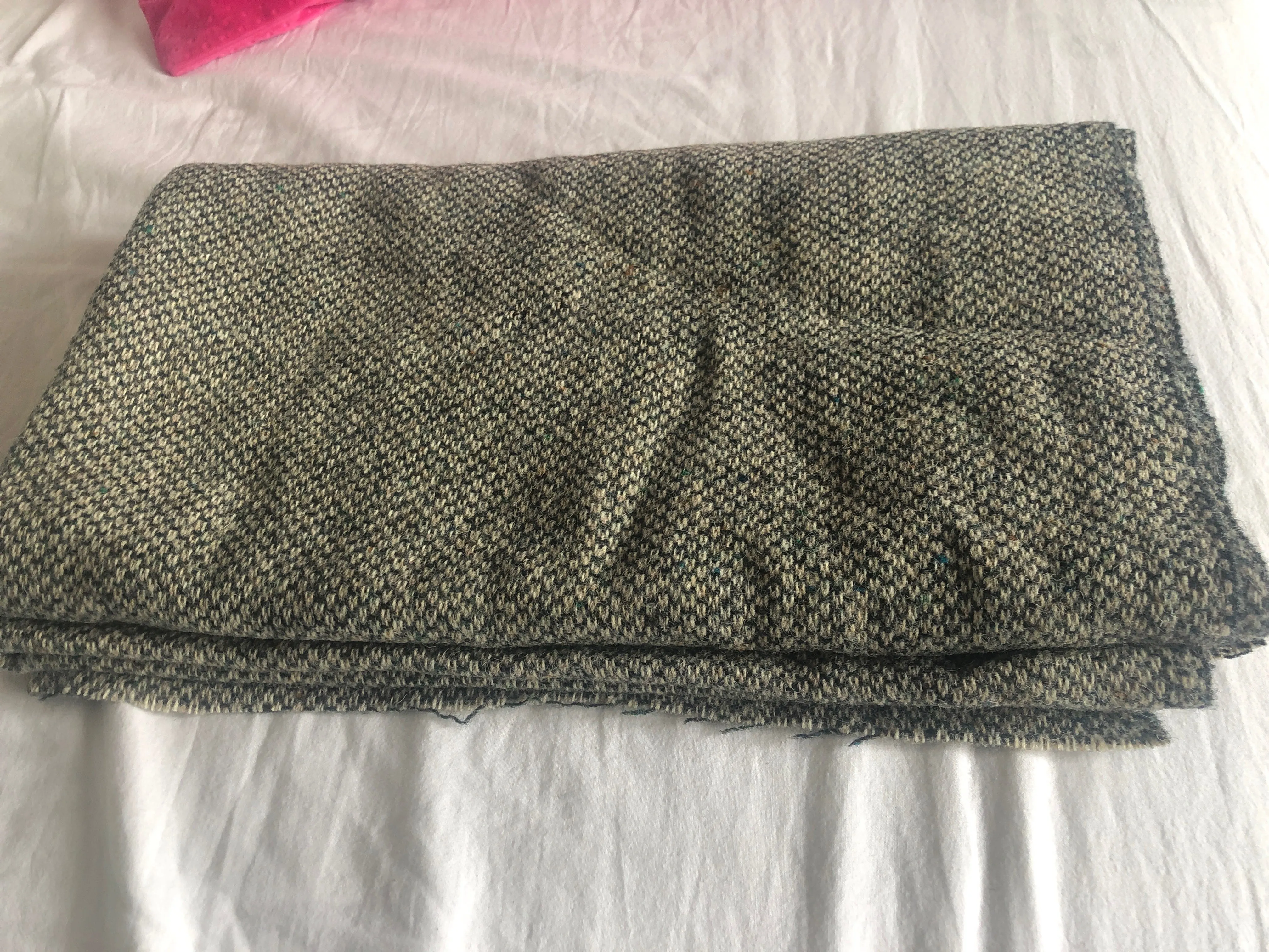 Wool tweed fabric - has bits of turquoise and gold/amber, quite nice!