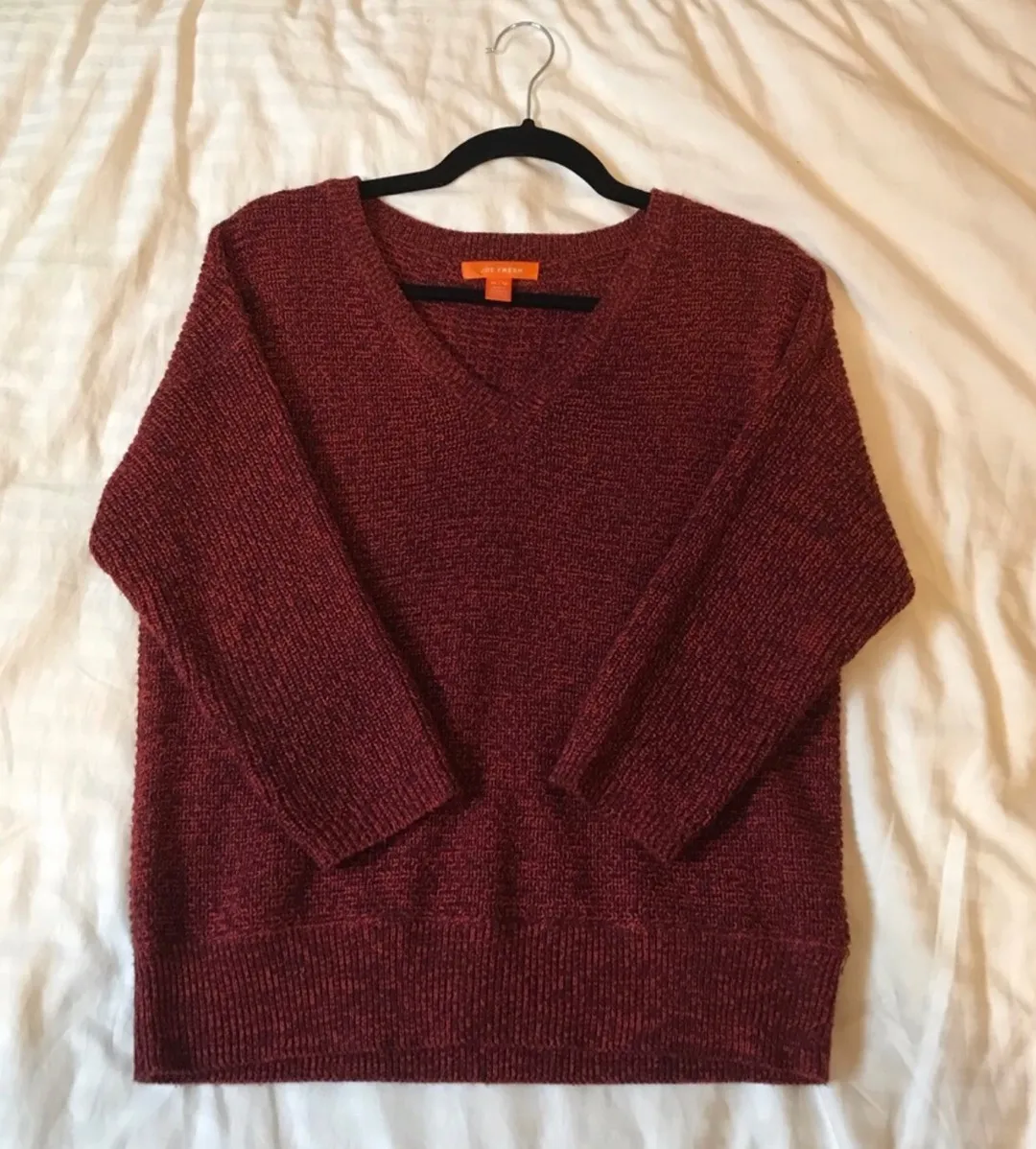 3 1/4 Length Sleves Fits more like a medium, very cozy.