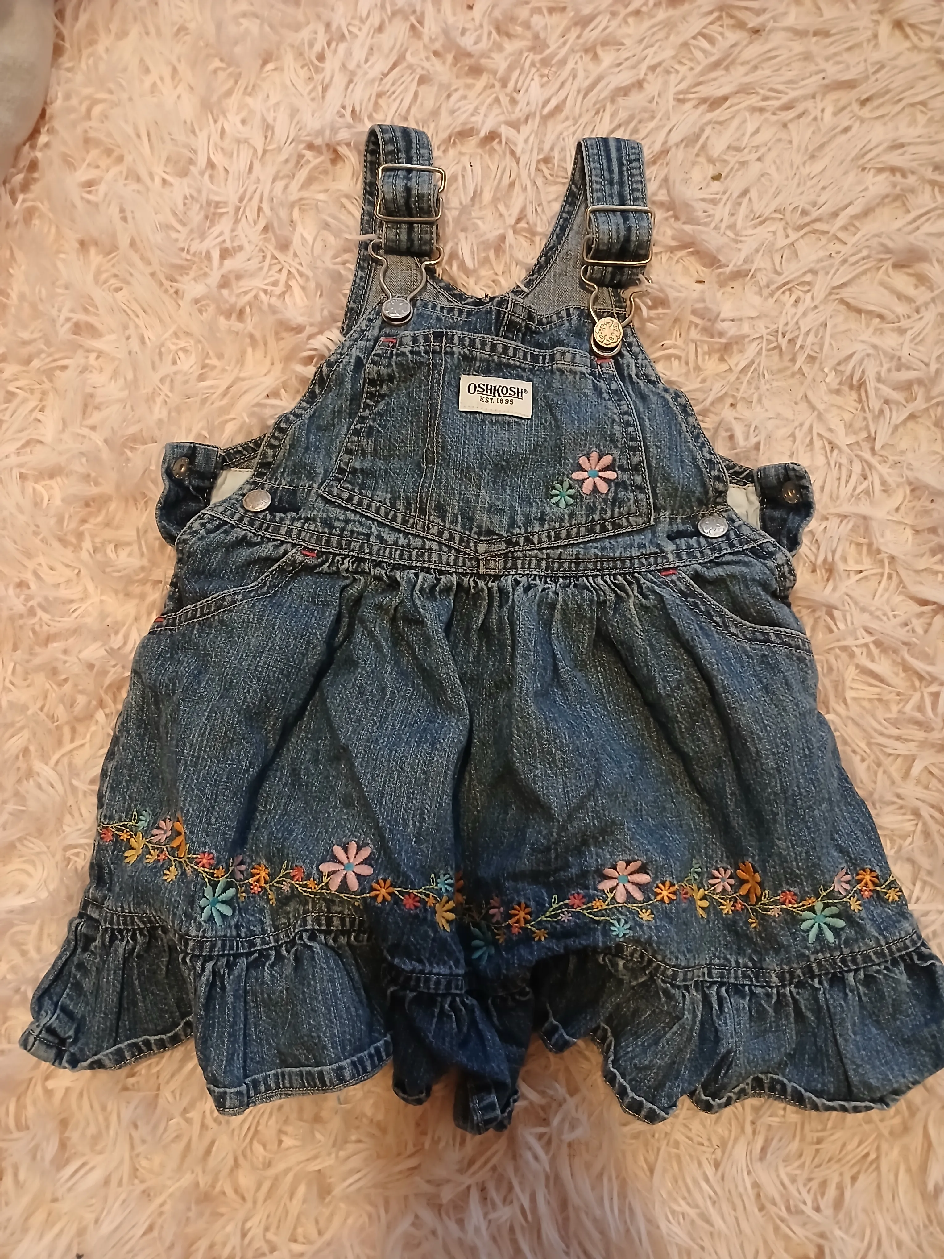 Toddler size 24m denim overall dress with floral accents Excellent condition