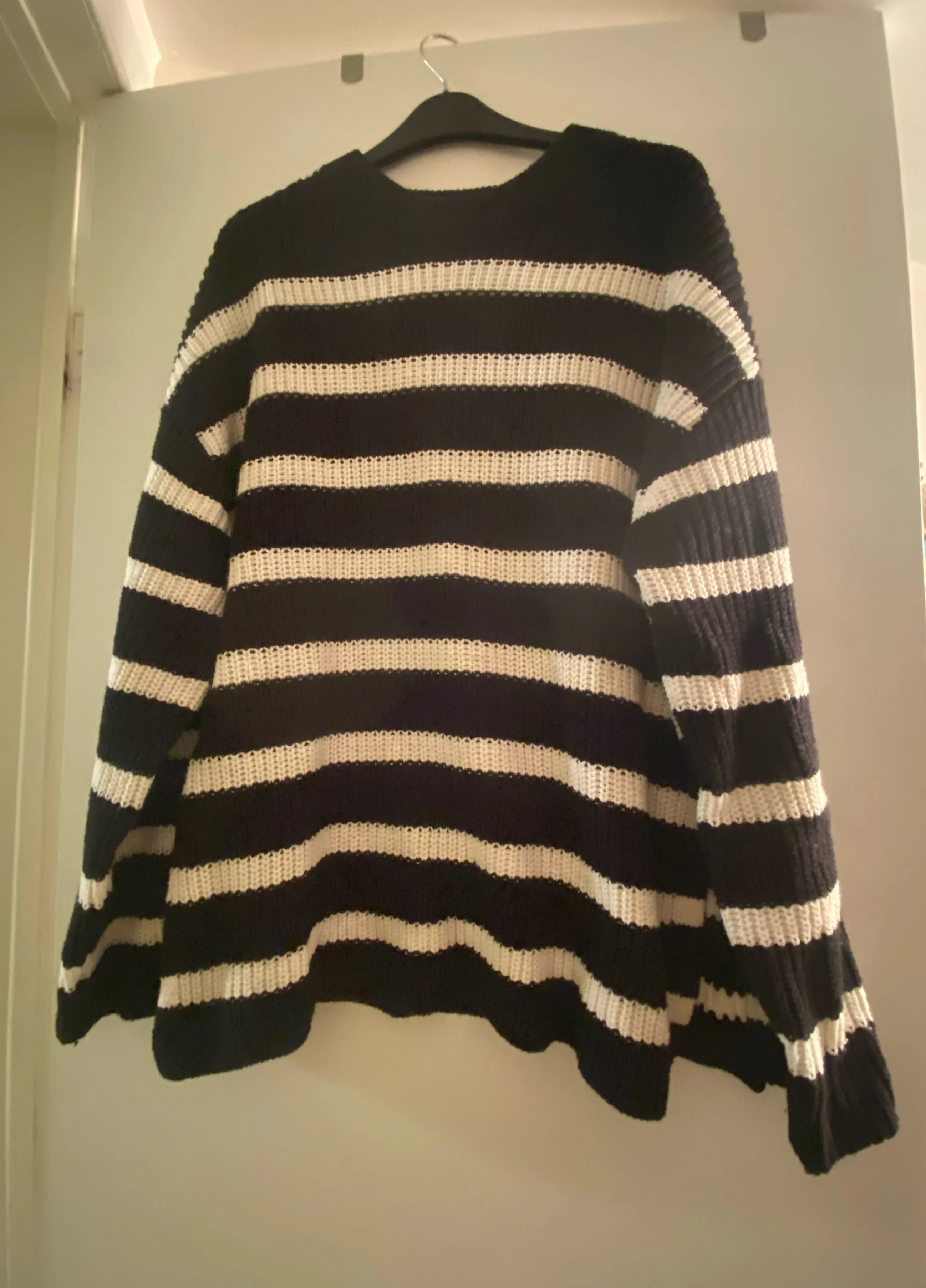 Oversized H&M black and white knit sweater. Marked size small, but so roomy it could definitely fit a medium and possibly large.