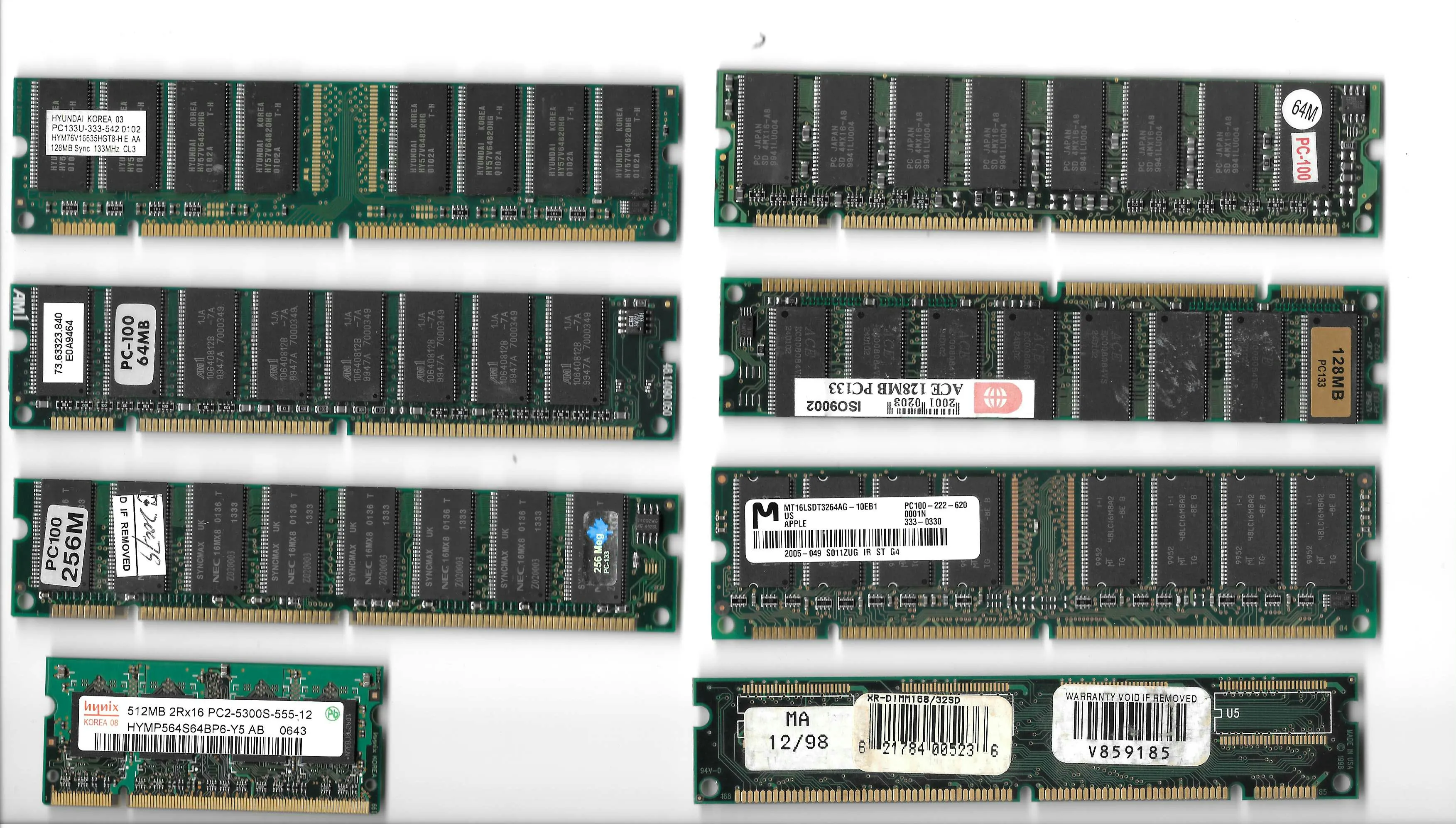 Mostly PC100 & PC133 sticks. All markings on the chips should be clearly legible in the pics. LMK if you experience difficulty or want to see "the other side" of a particular stick.