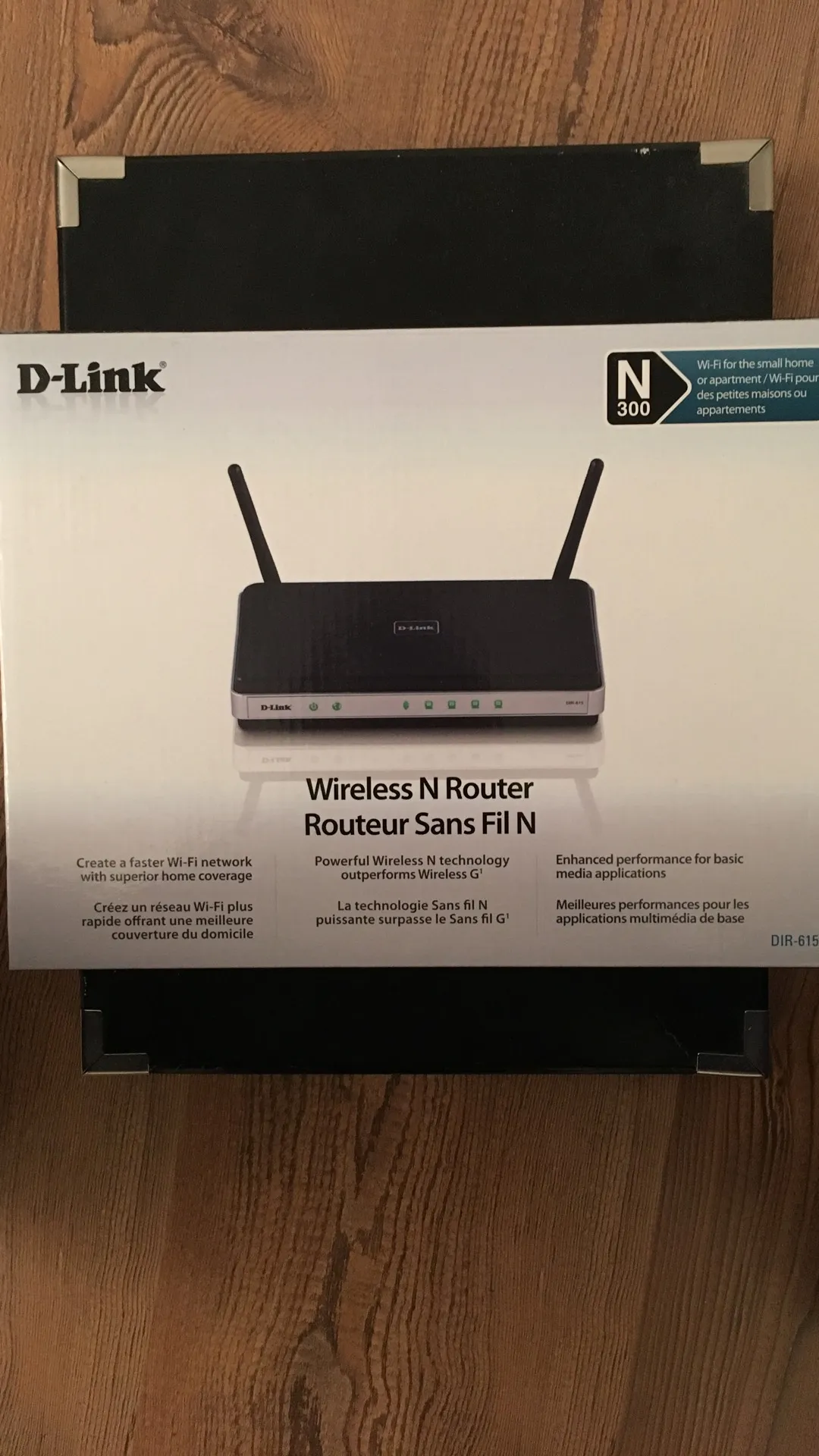 D-Link Wireless Router. Fast wi-fi network. Includes Ethernet cable and power cord.