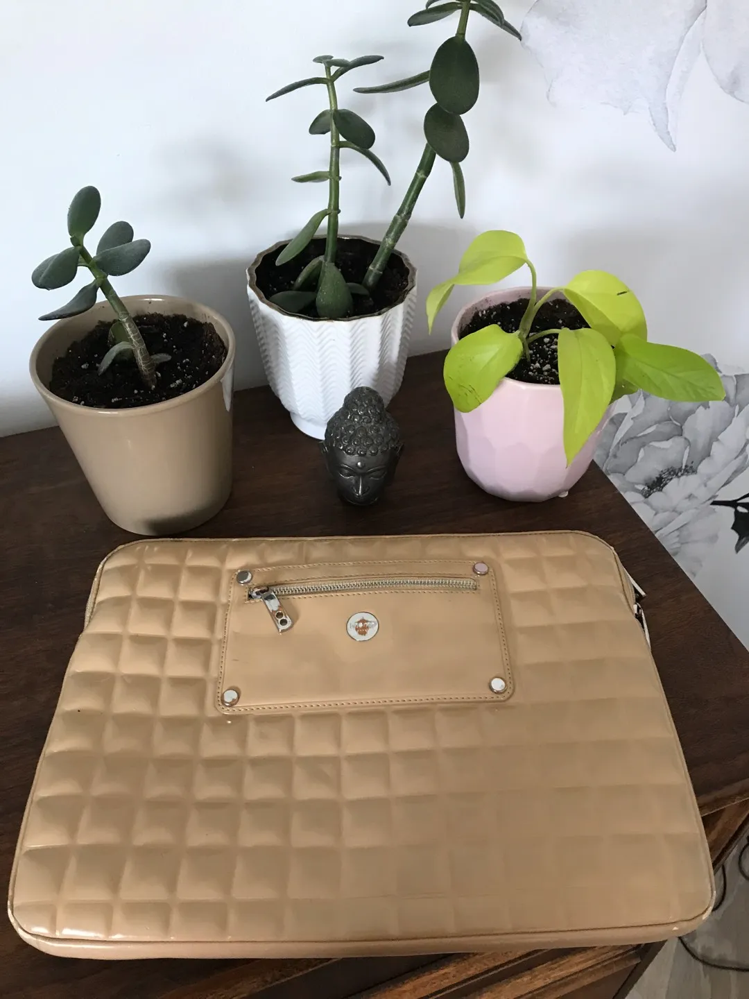 Has definitely been well used - some of the metal details on the front are scratched and the top edge of the case is worn, but the inside is in perfect condition and really effective at cushioning your laptop!
