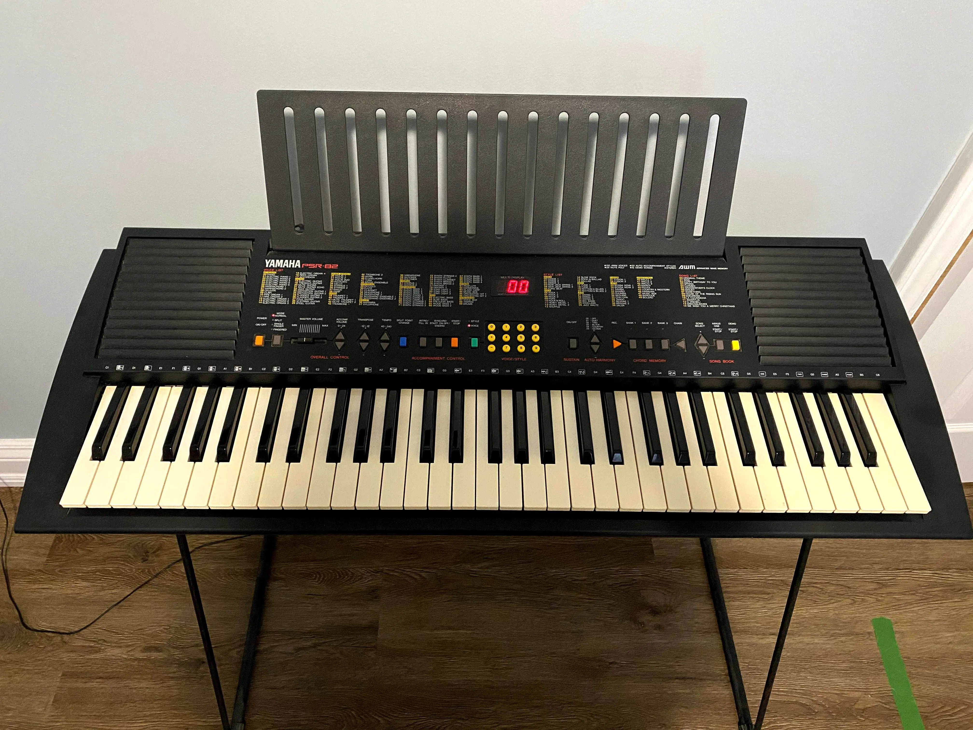 Modern Vintage 1993 Yamaha PSR-82 Keyboard 61 Keys in fully functional condition. Original box, manual, adapter, stand